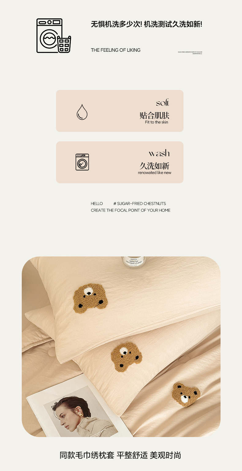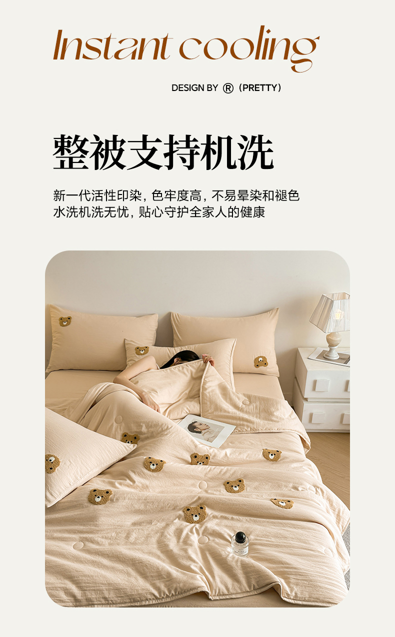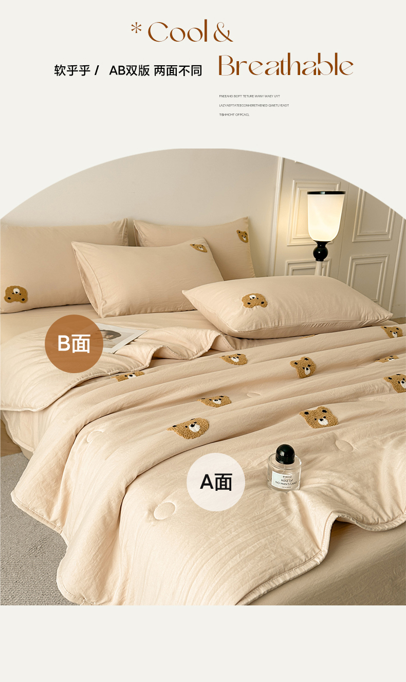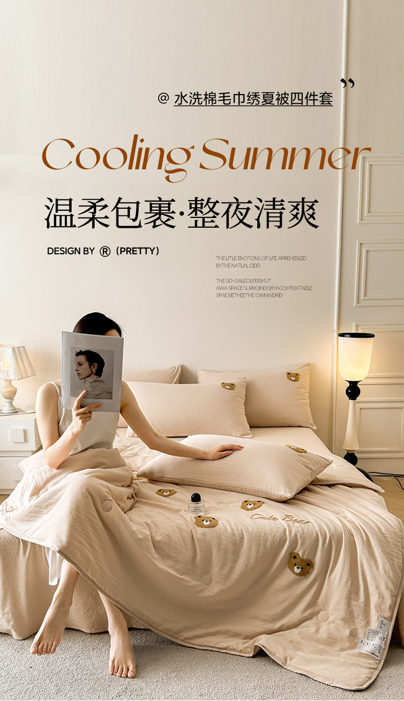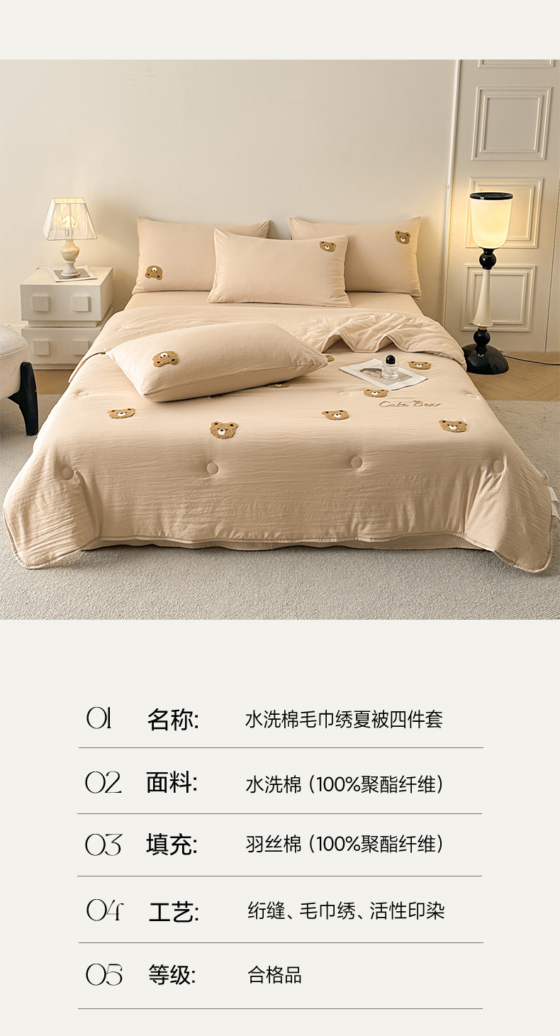 • 91家纺网 家纺一手货源 找家纺 遇见家居生活馆 2026新款水洗棉毛巾绣夏被四件套-艾拉 艾拉-小熊香槟