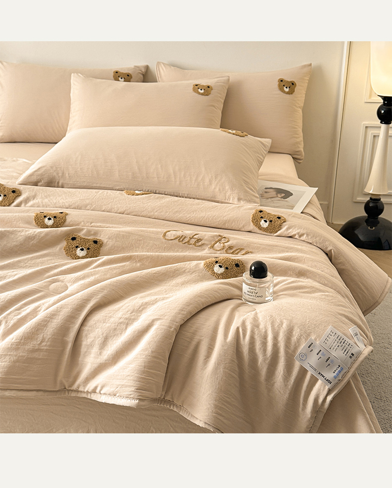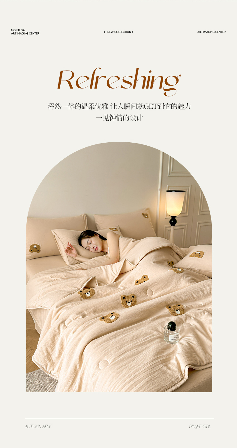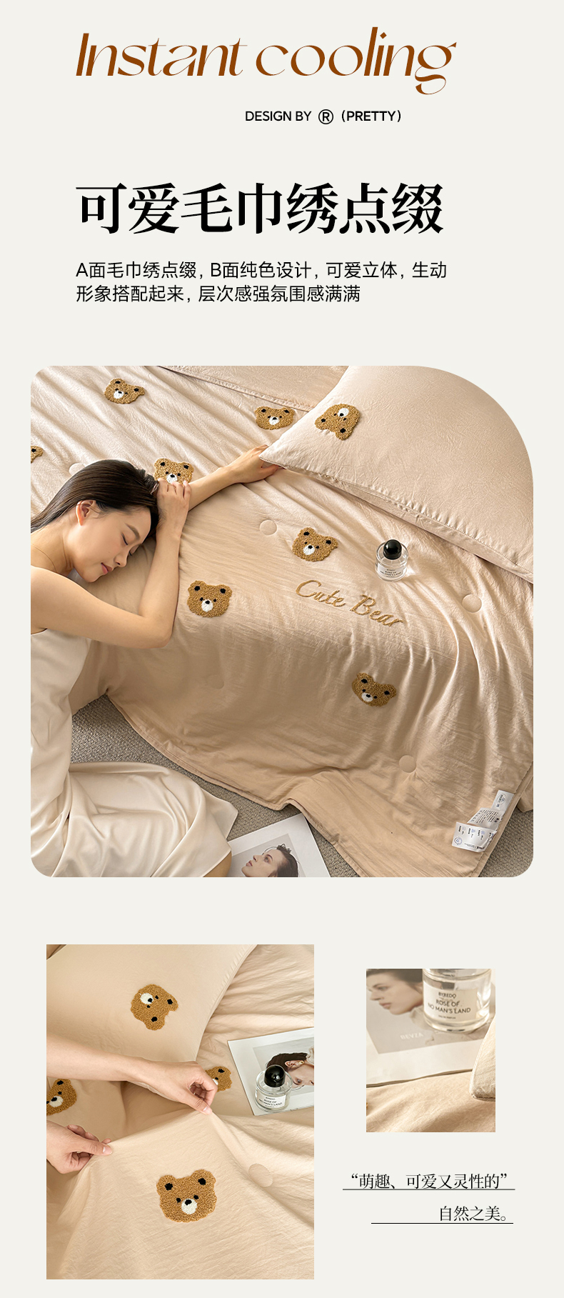 遇见家居生活馆 2026新款水洗棉毛巾绣夏被四件套-艾拉 艾拉-小熊香槟