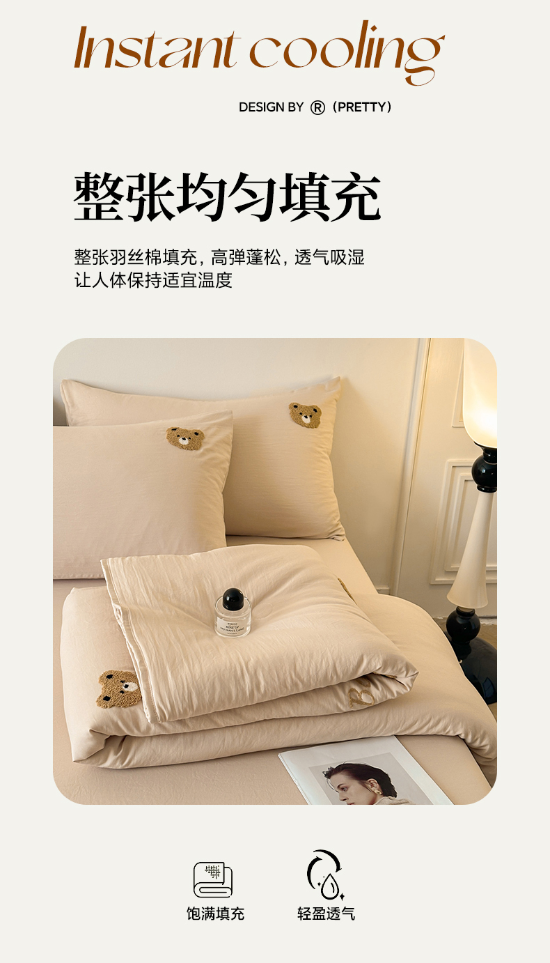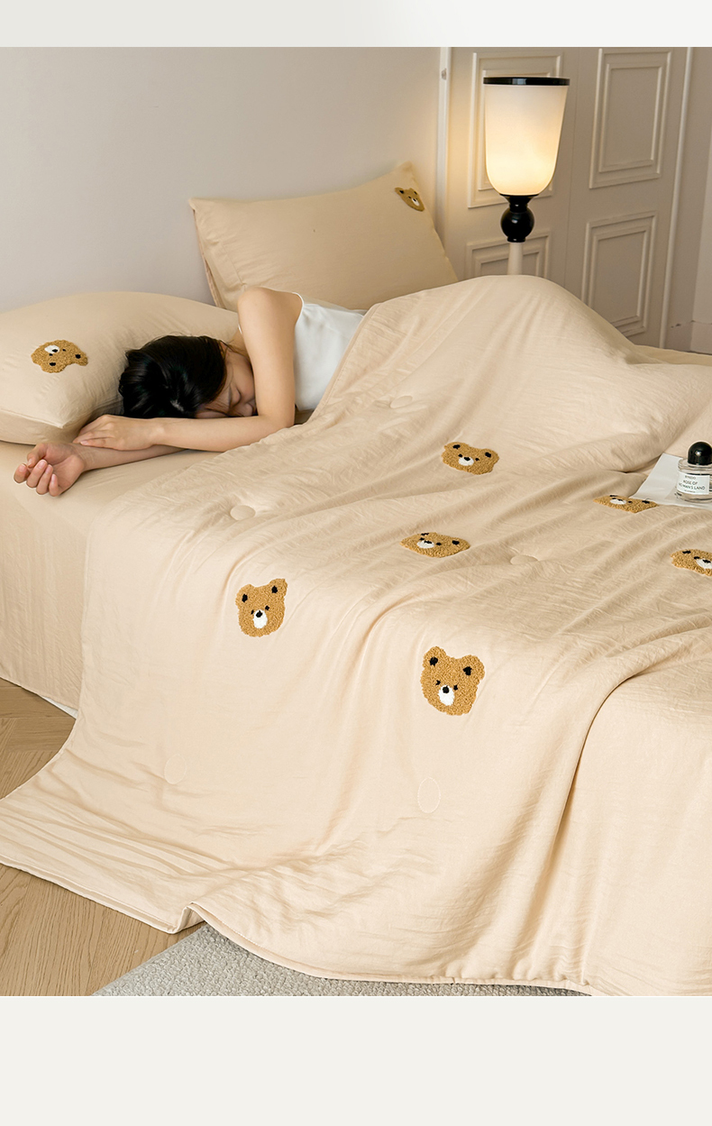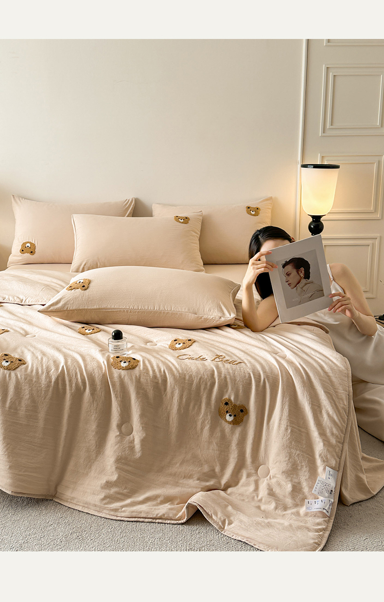 遇见家居生活馆 2026新款水洗棉毛巾绣夏被四件套-艾拉 艾拉-小熊香槟