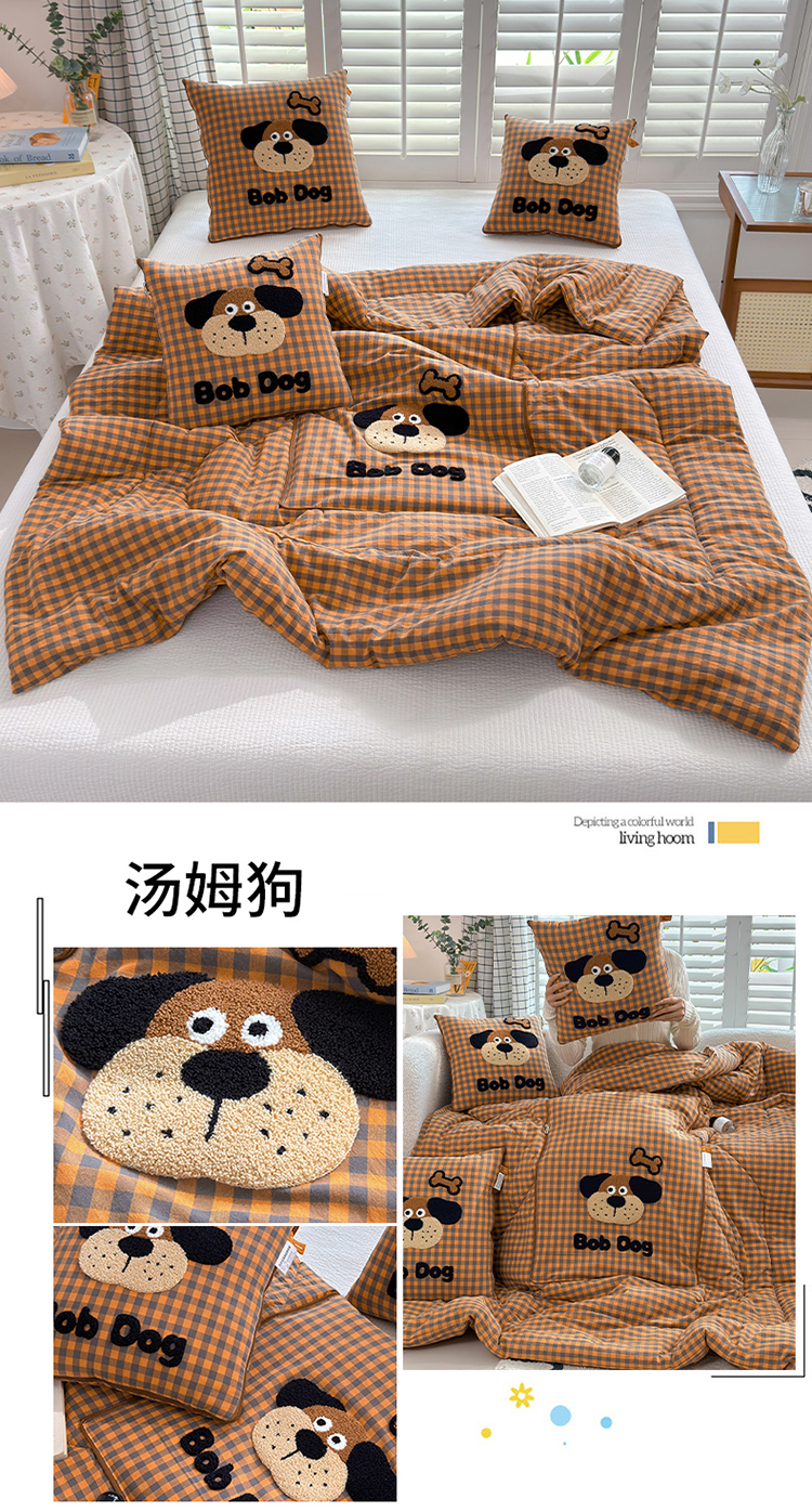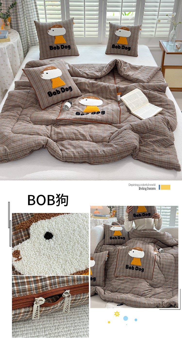 (总)宝马家纺(原梦童画) 2025新款多巴胺风格牛奶绒贴布绣抱枕被,小狗-黑色,兔子-粉,雪人-紫色,眼镜熊-绿,组合