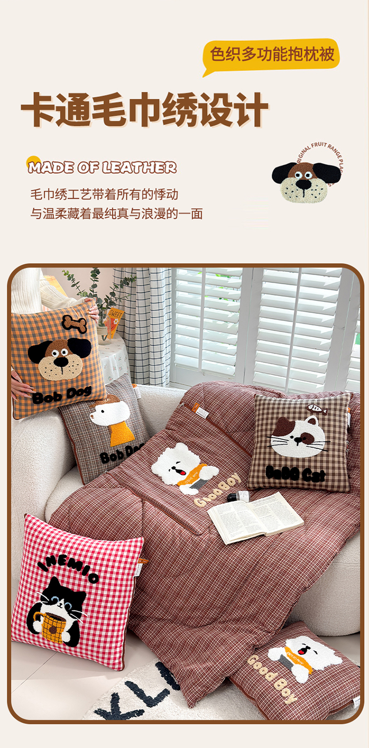(总)宝马家纺(原梦童画) 2025新款牛奶绒贴布绣抱枕被可爱猫咪,猫咪-咖