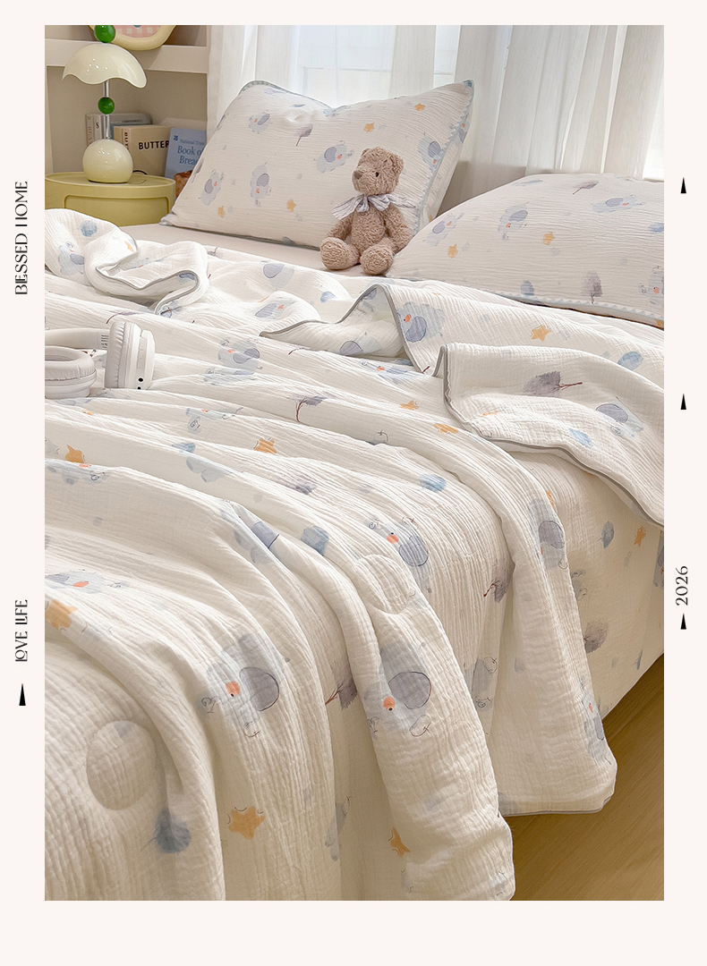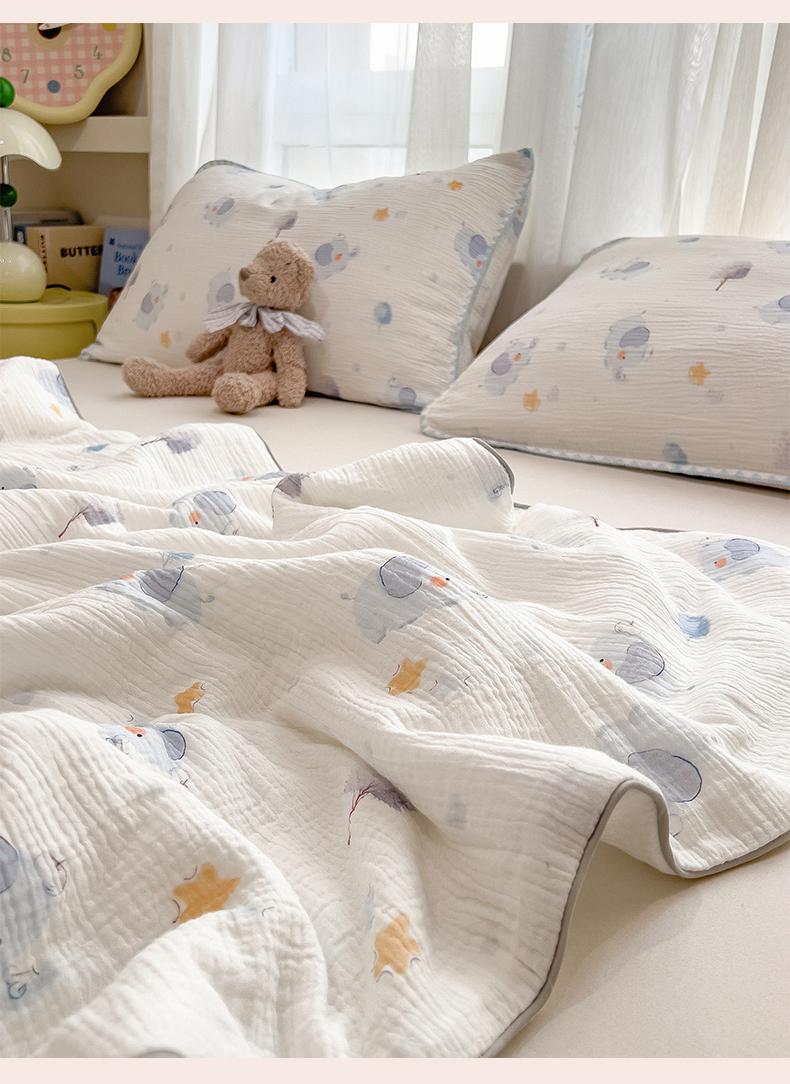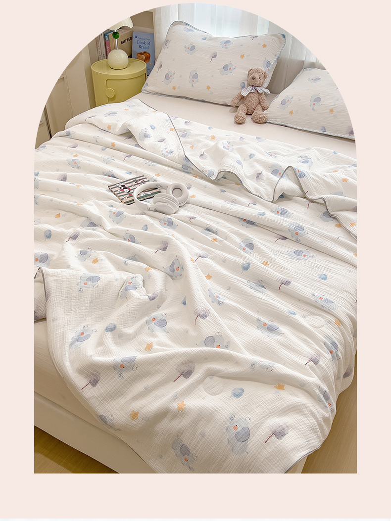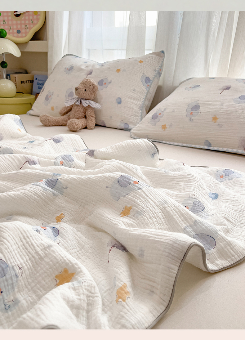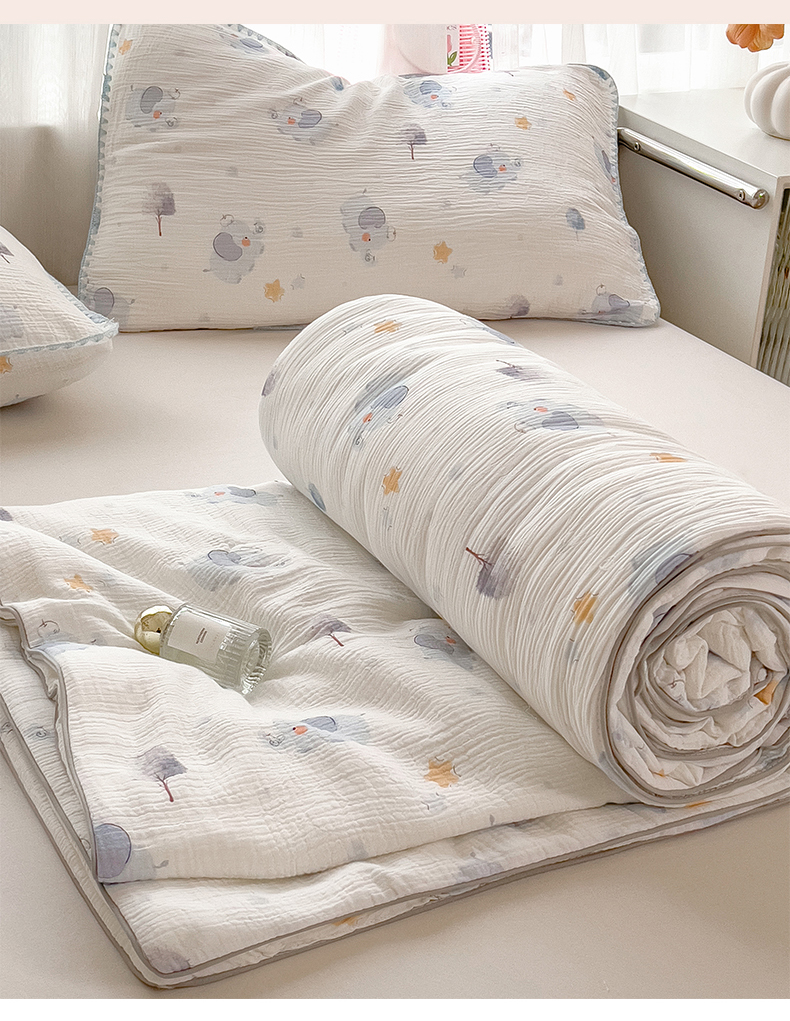 商品名称:兄弟坊 2026春夏新款全棉纯棉印花双层皱皱纱(滚边款)夏被纱布夏凉被午睡被盖毯夏凉被 象星语