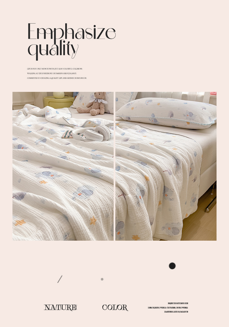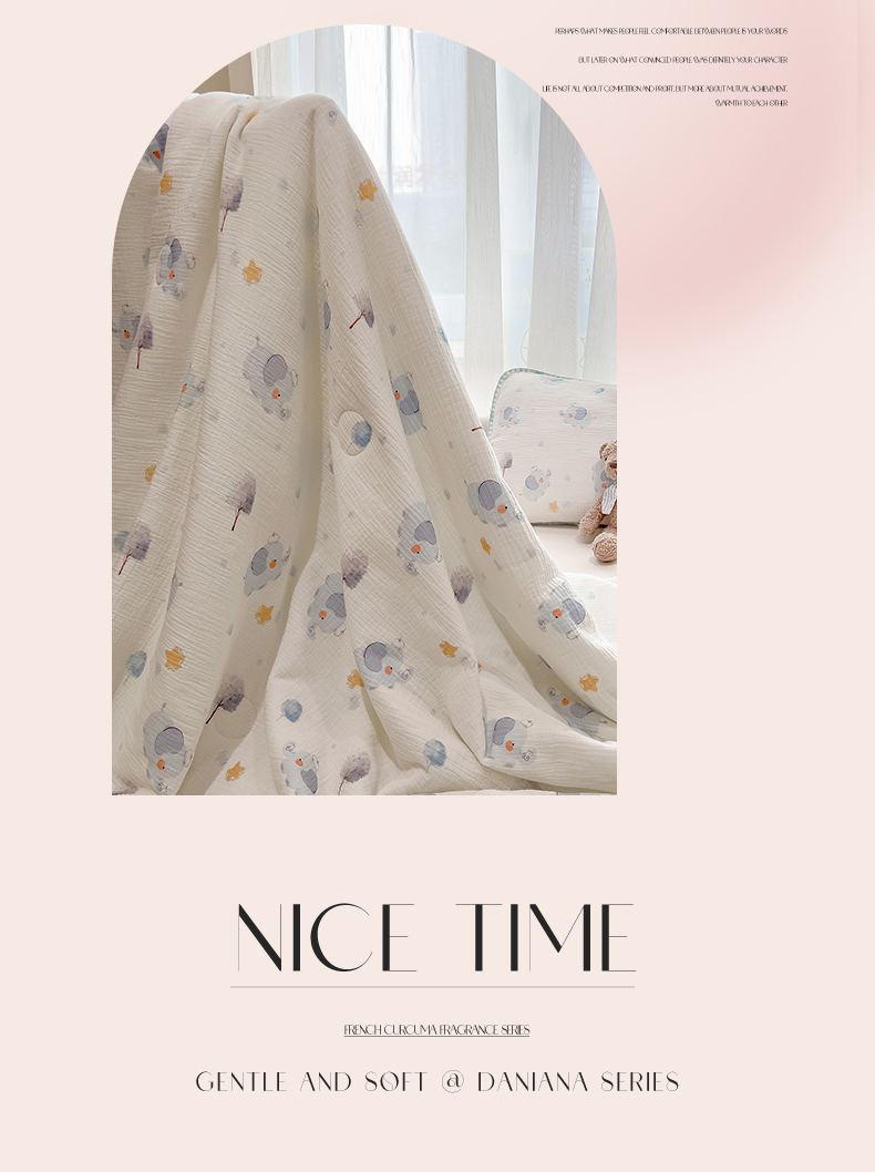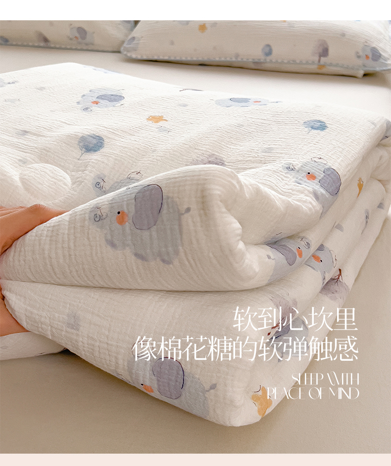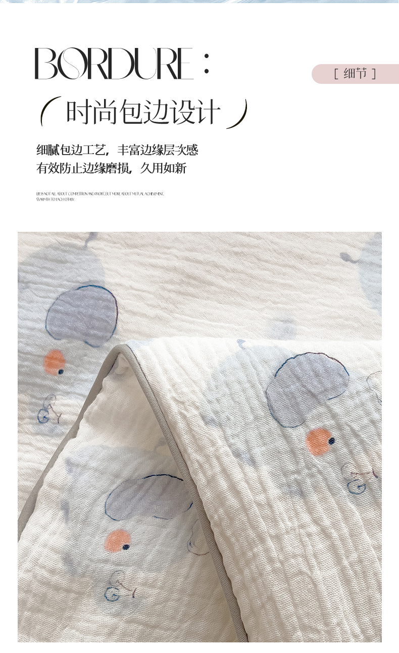 商品名称:兄弟坊 2026春夏新款全棉纯棉印花双层皱皱纱(滚边款)夏被纱布夏凉被午睡被盖毯夏凉被 象星语