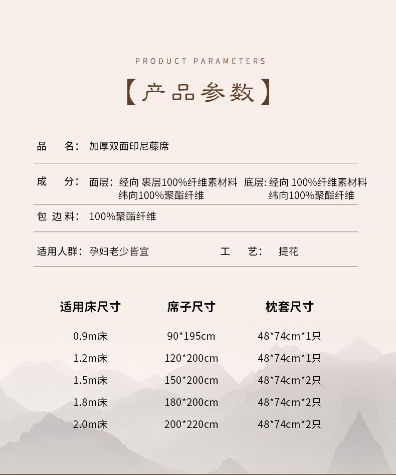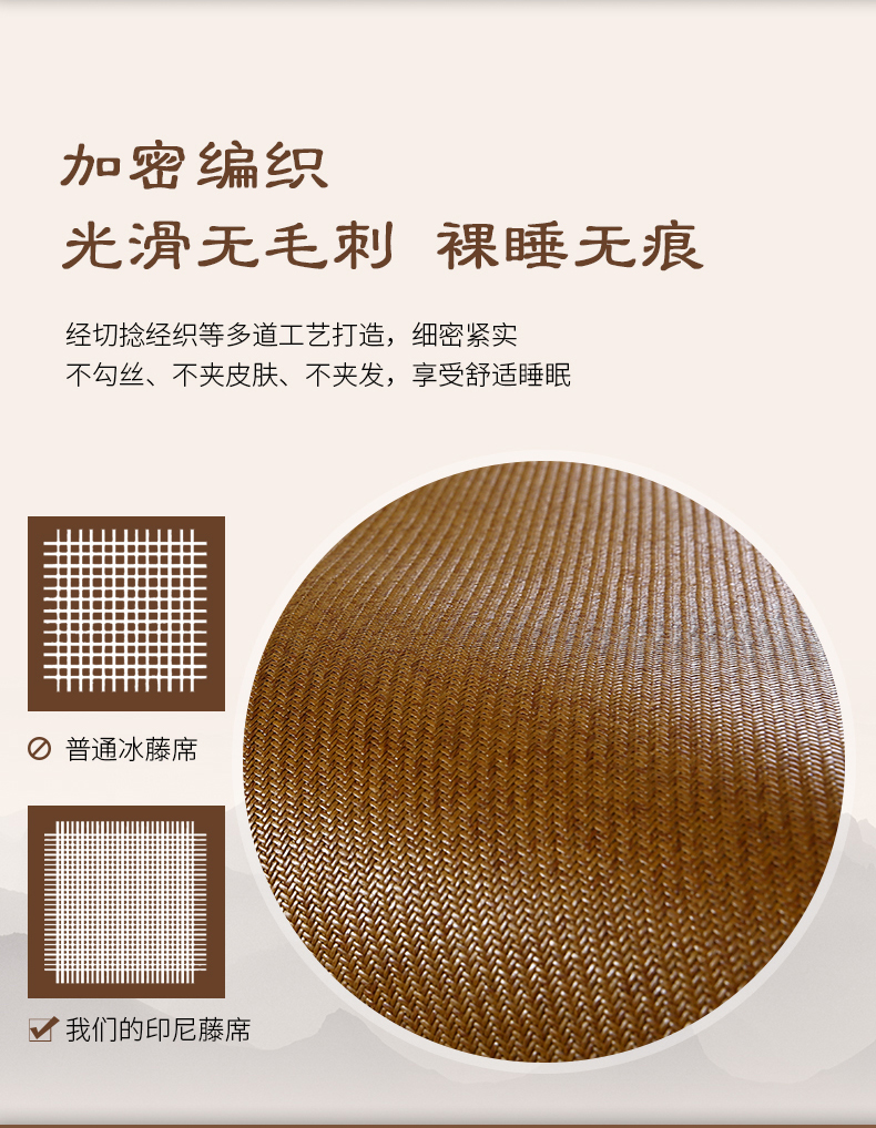 商品名称:(总)小牛席业 2026新款加厚双面印尼藤席(10斤款)凉席藤席冰藤席冰丝席竹席乳胶席凉豆豆席