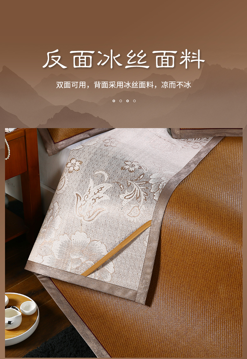 2023新款夏日冰点-冰藤双面席凉席藤席竹席冰丝席乳胶席,咖色,蓝色,绿色,香槟