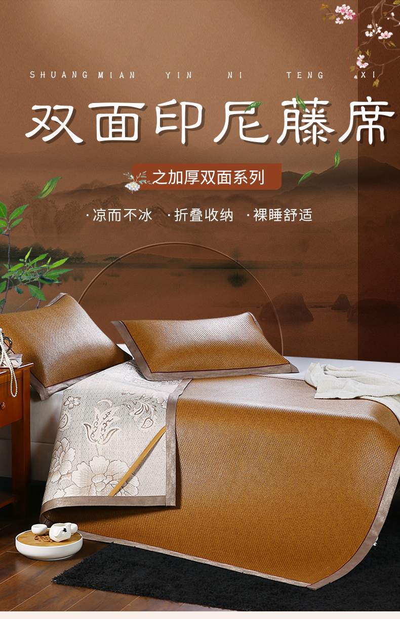(总)小牛席业 2026新款加厚双面印尼藤席(10斤款)凉席藤席冰藤席冰丝席竹席乳胶席凉豆豆席