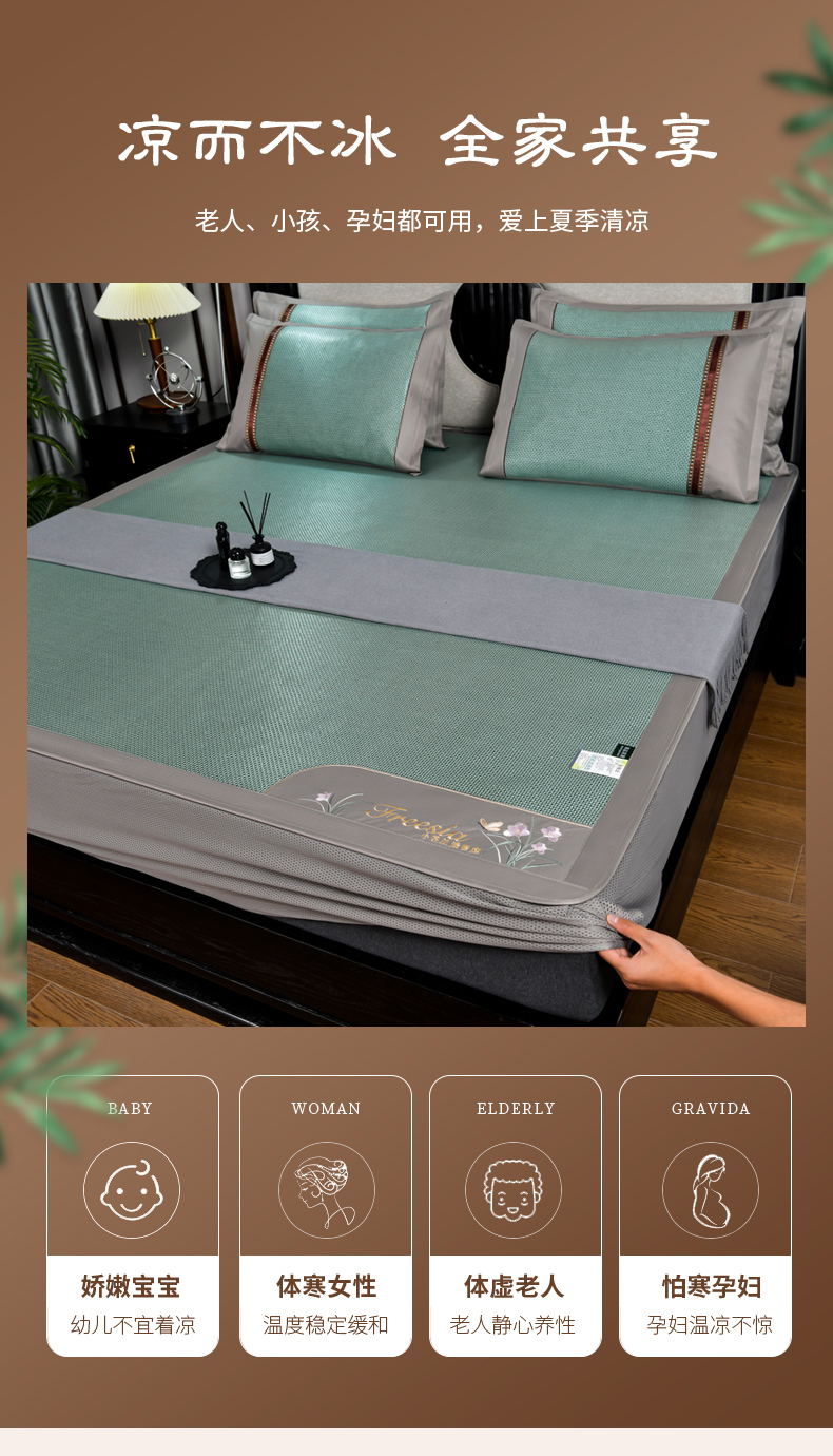 当前位置: 91家纺网 > 商品网购 > 床上用品 > 凉席 > 藤席 > 小牛席业 2026新款小苍兰冰藤席系列(床笠款)凉席藤席冰藤席冰丝席竹席乳胶席 小苍兰清香冰藤席-床笠款(绿色)