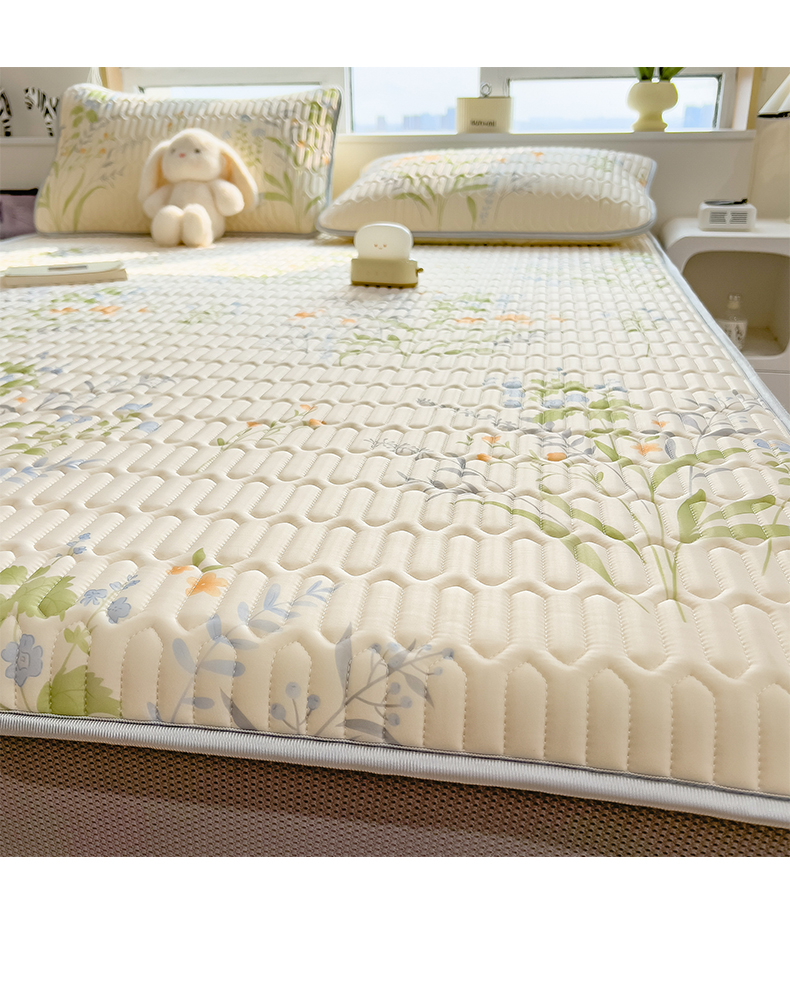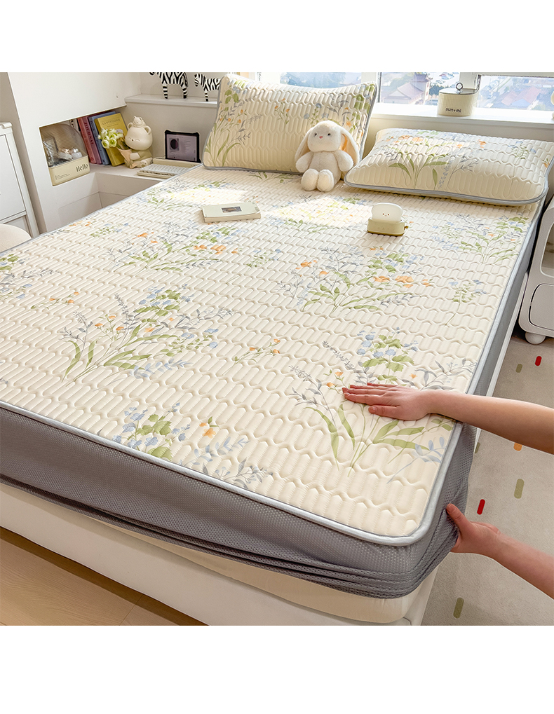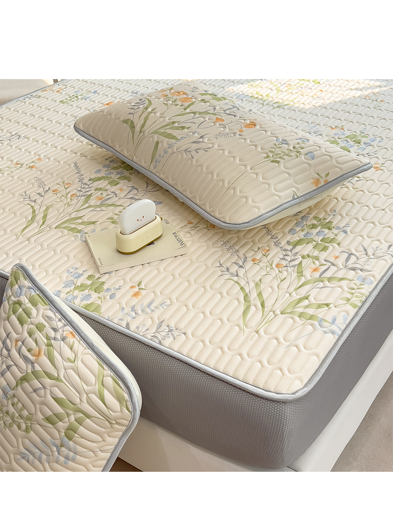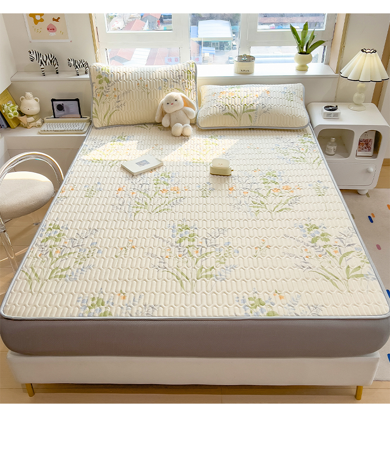 摩妮卡 2026春夏新款凉感丝印花小清新乳胶凉席席子床笠款三件套 绿意盎然