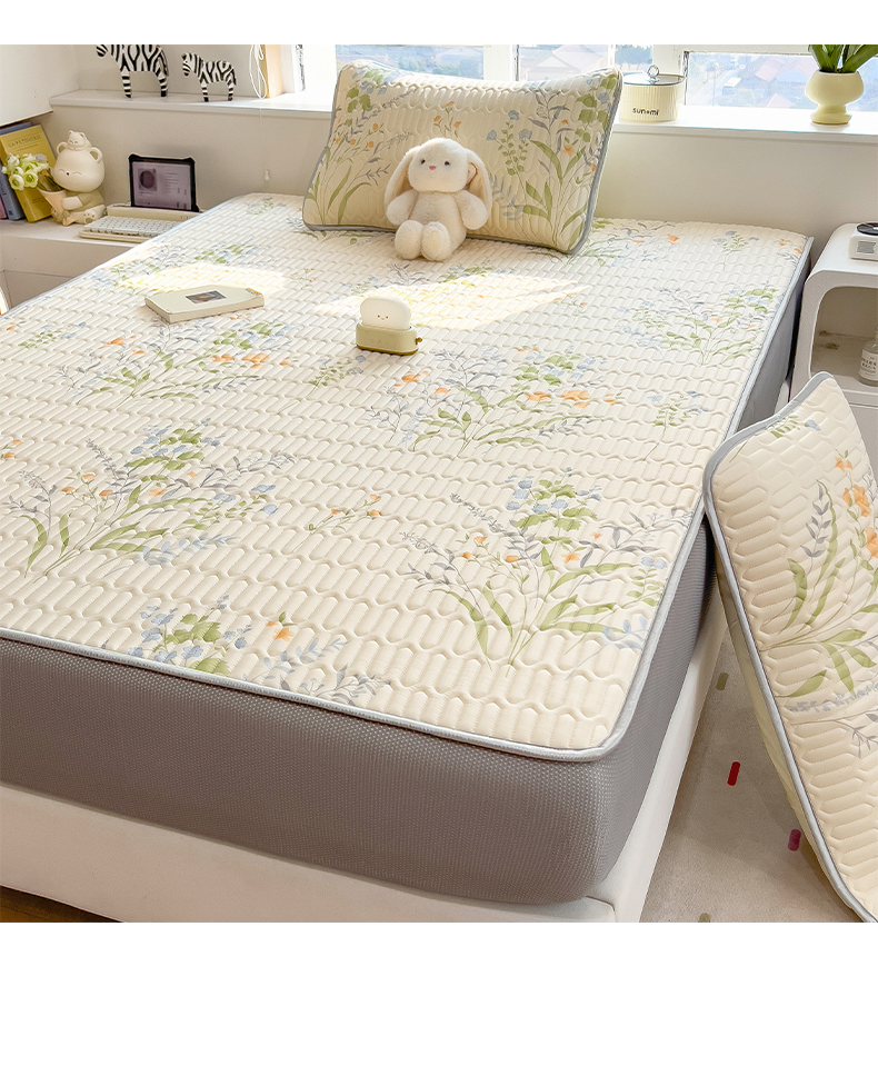 商品名称:摩妮卡 2026春夏新款凉感丝印花小清新乳胶凉席席子床笠款三件套 绿意盎然