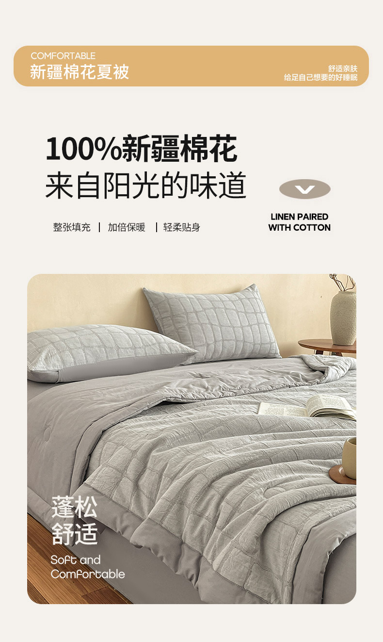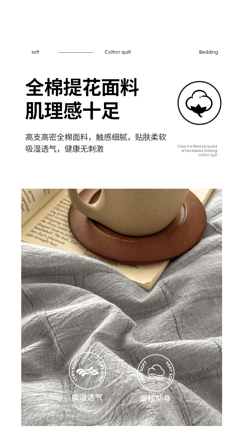 (总)绒城 2026新款全棉纯棉大提花新疆棉花夏被夏凉被空调被四件套-律动,律动-奶咖,律动-浅灰,律动-深灰,律动-天兰