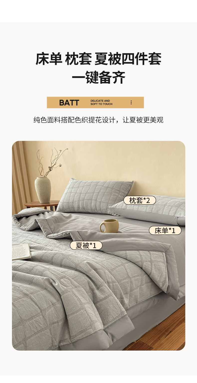 • 91家纺网 家纺一手货源 找家纺 绒城 2026新款全棉纯棉大提花新疆棉花夏被夏凉被空调被四件套-石纹 石纹-浅灰