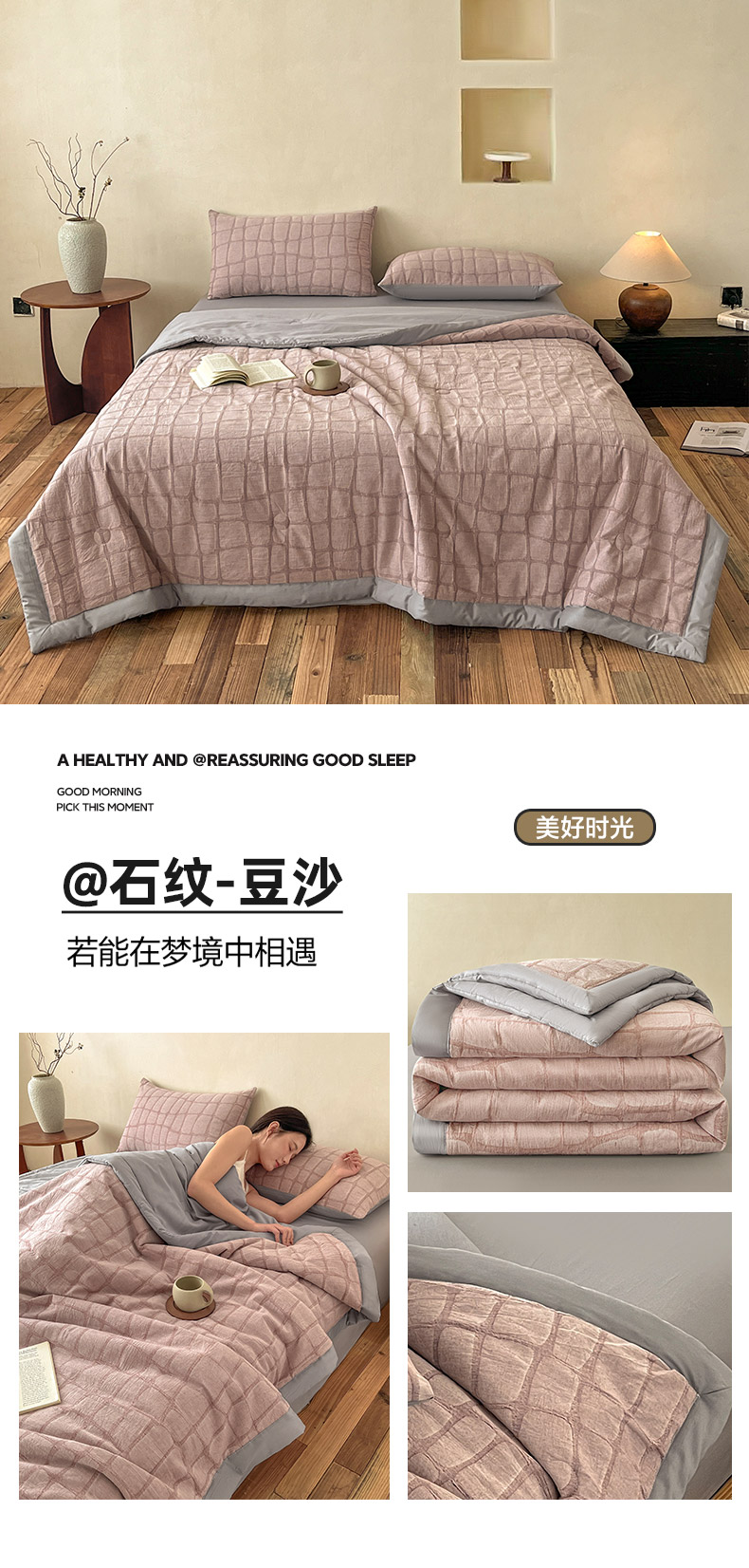 • 91家纺网 家纺一手货源 找家纺 (总)绒城 2026新款全棉纯棉大提花新疆棉花夏被夏凉被空调被四件套-石纹,石纹-豆沙,石纹-卡其,石纹-浅灰,石纹-浅绿,石纹-深灰