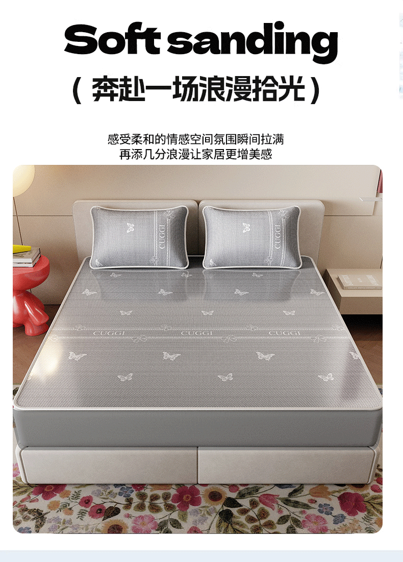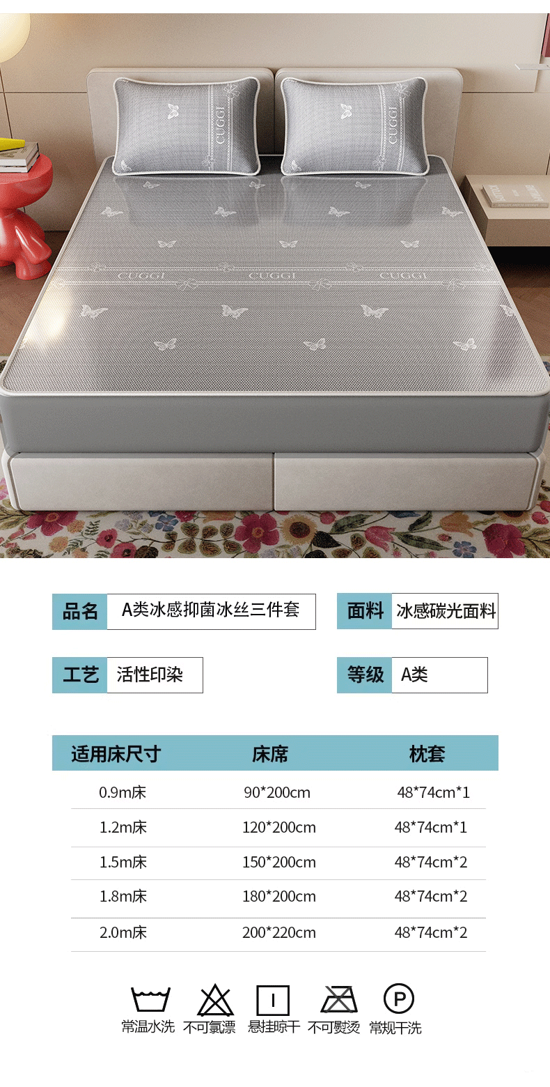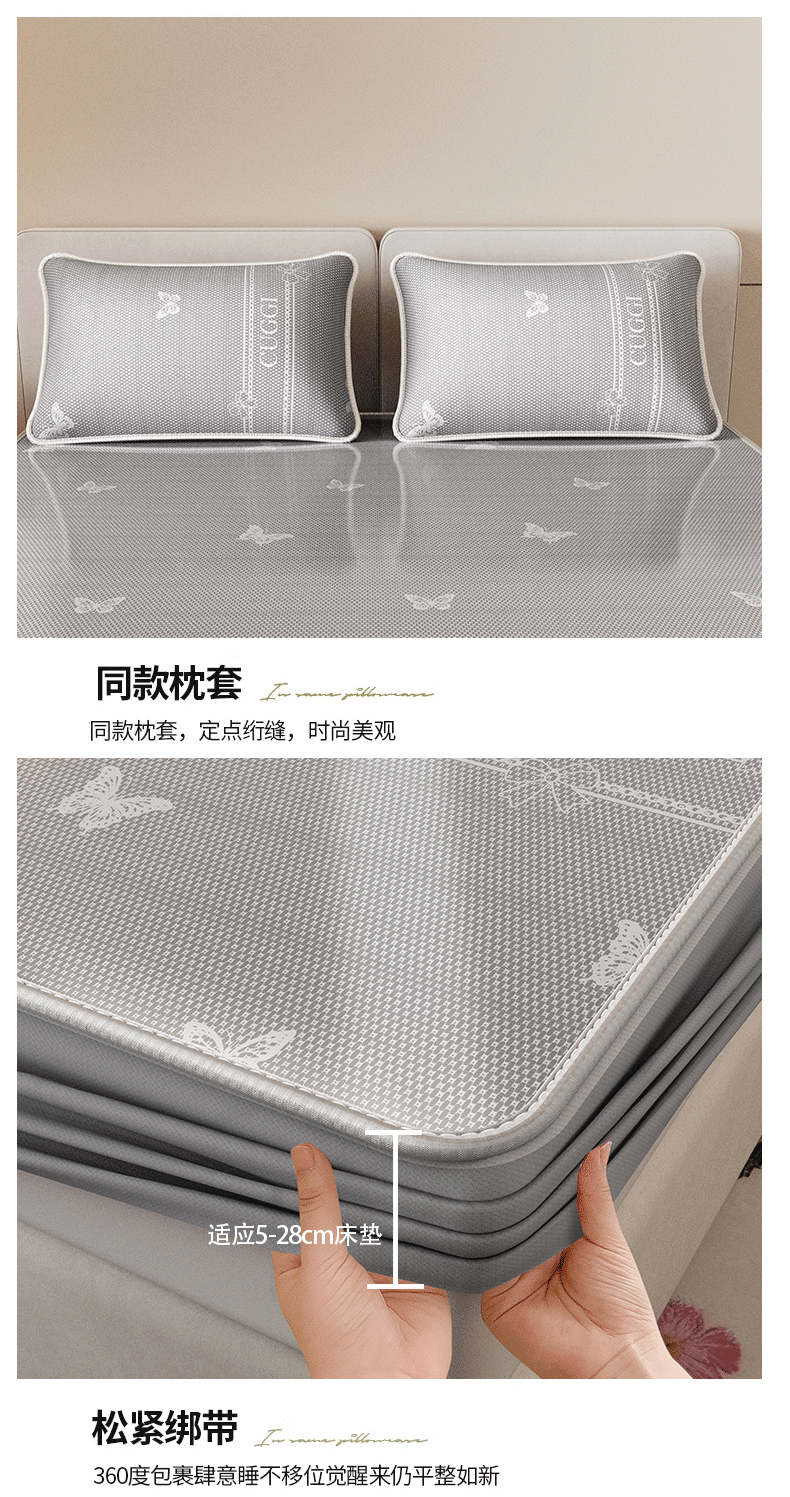 当前位置: 91家纺网 > 商品网购 > 床上用品 > 凉席 > 凉席套件 > 好福居 2026新款A类冰感抑菌印花冰丝席凉席-床笠款-床席款 蝴蝶灰-床笠款