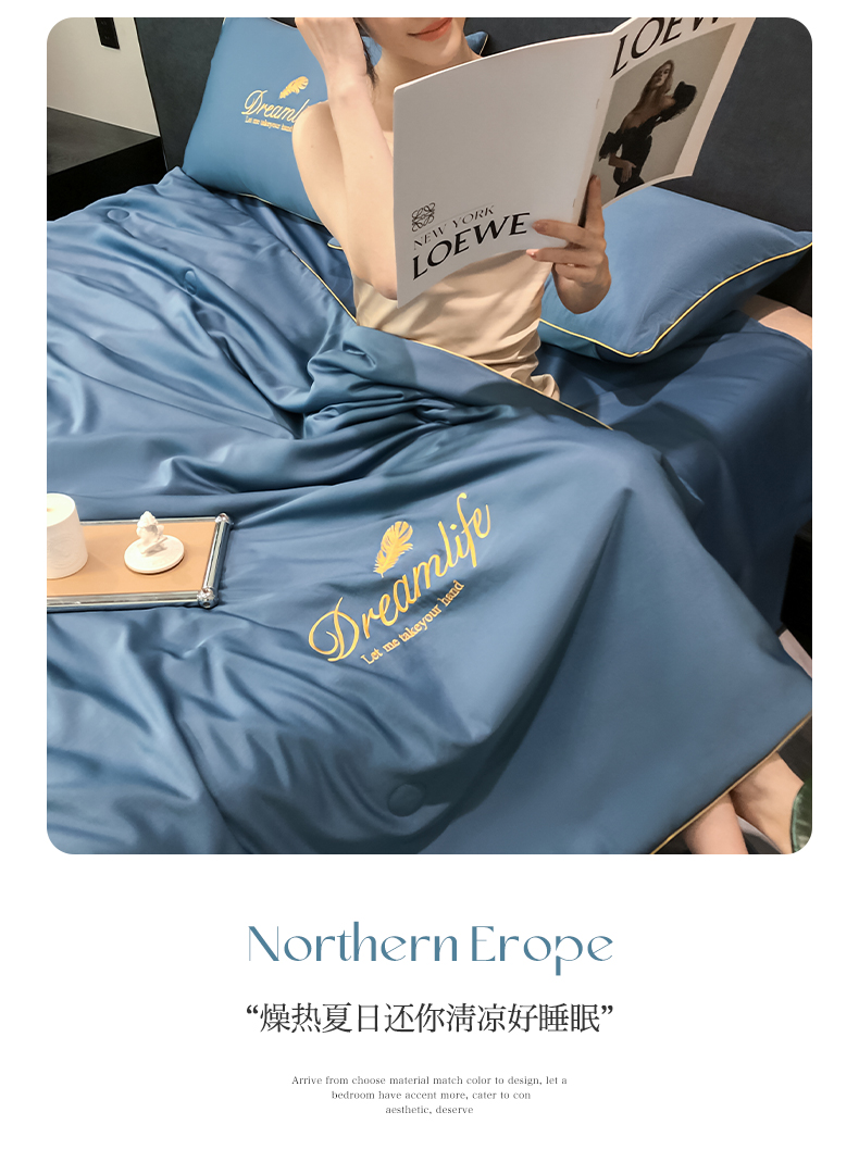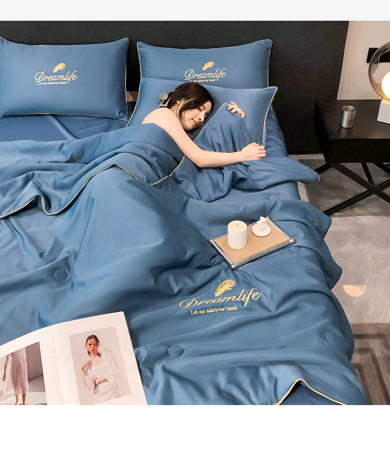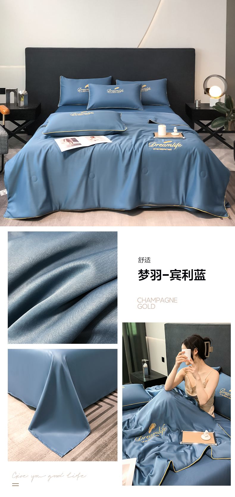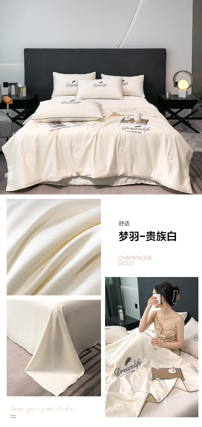 商品名称:(总)乐窝家纺仓储 2026新款滚边水洗真丝水洗天丝冰丝刺绣夏被四件套-羽毛系列