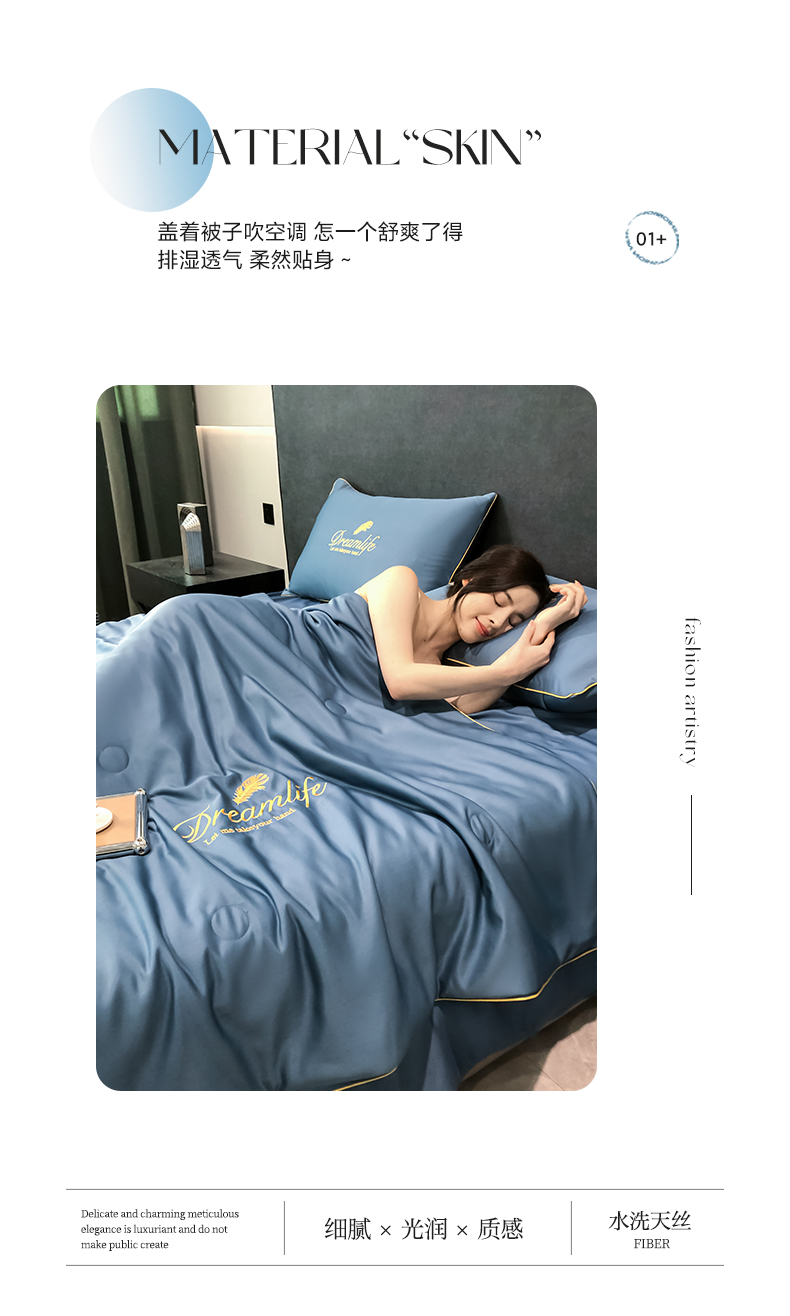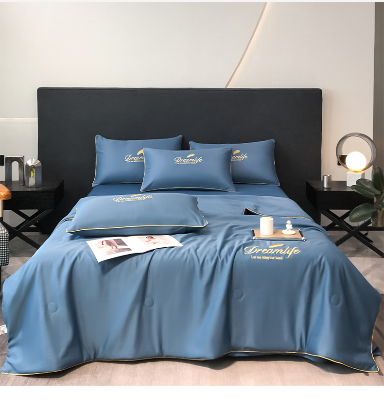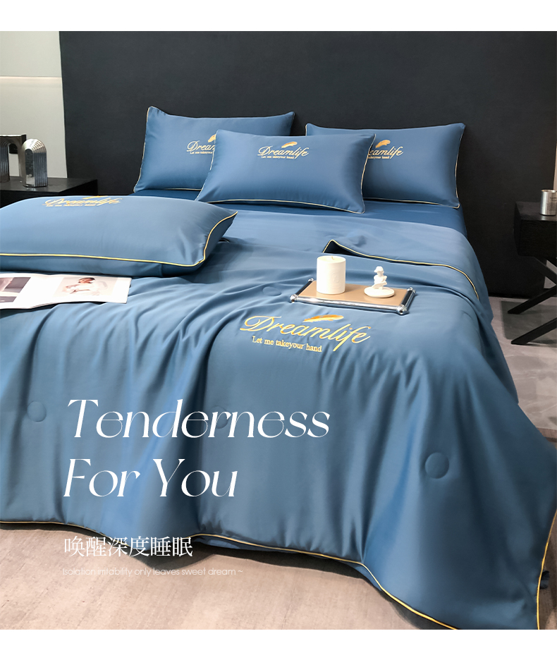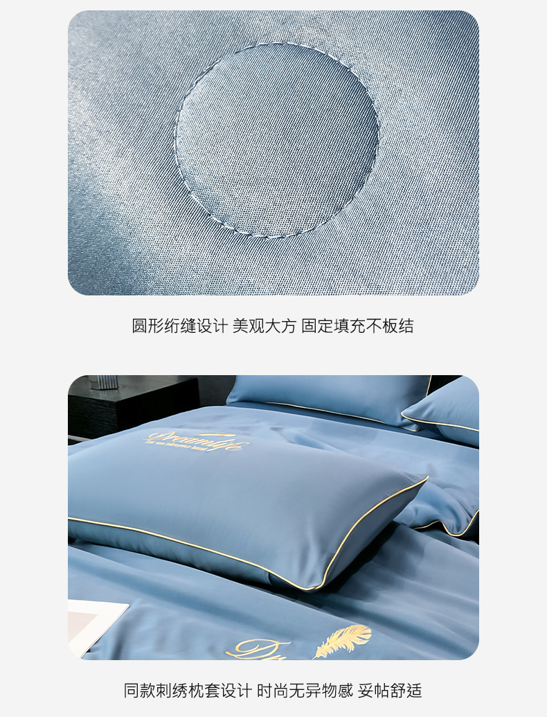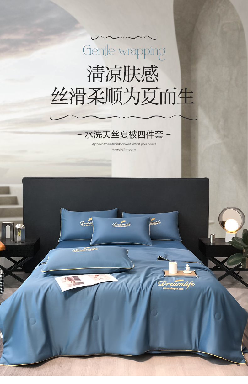 商品名称:(总)乐窝家纺仓储 2026新款滚边水洗真丝水洗天丝冰丝刺绣夏被四件套-羽毛系列