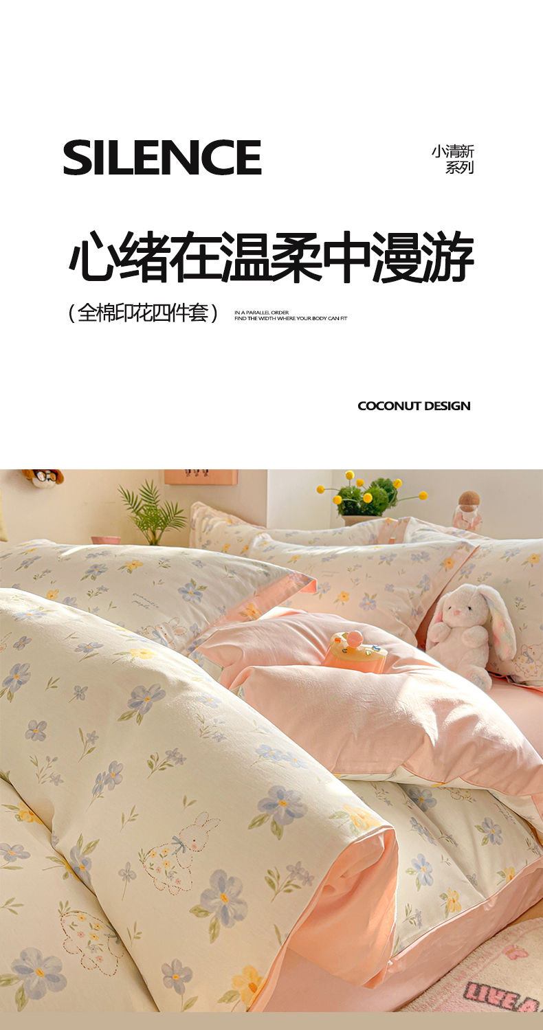 当前位置: 91家纺网 > 商品网购 > 床品套件 > 四件套 > 全棉普通四件套 > 涵宸家纺 2026新款全棉印花小清新四件套 兔茶春序