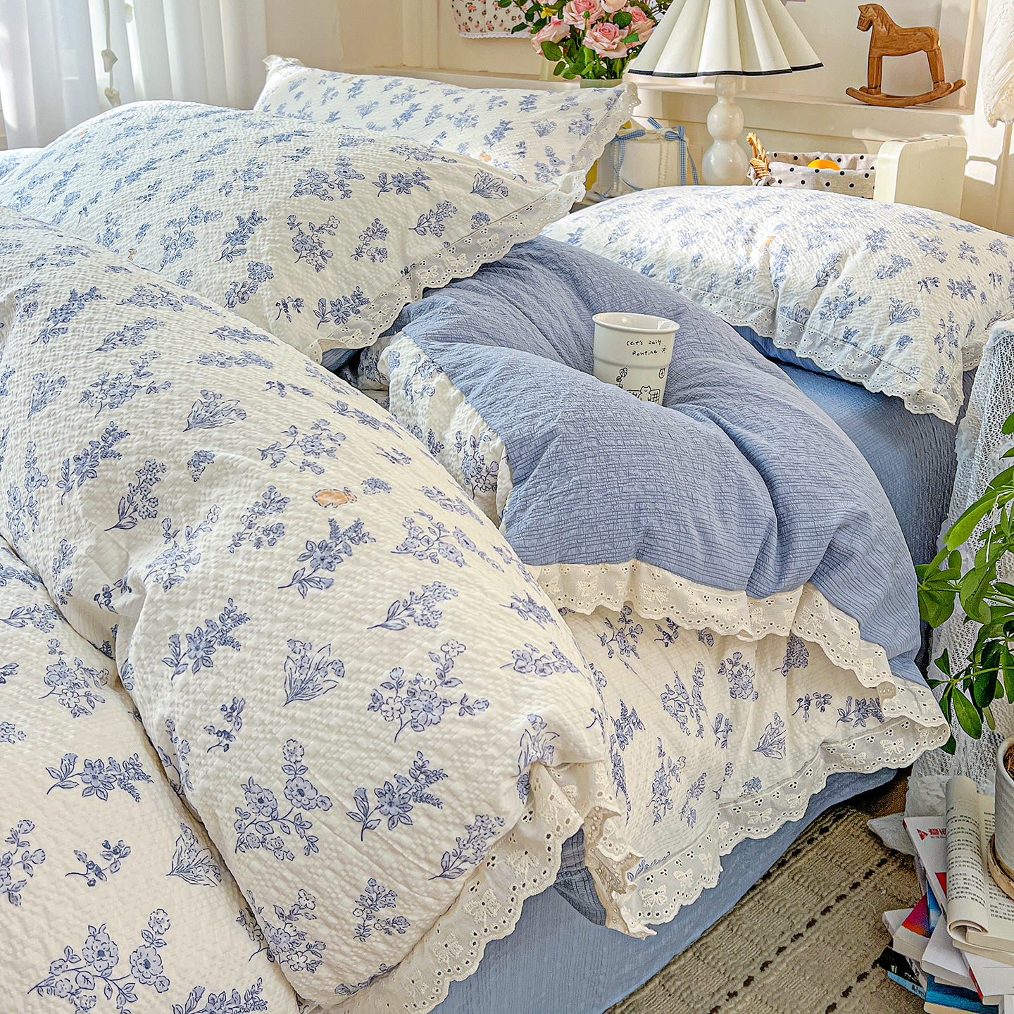 (总)一比一家纺 2026新款彩色花边木棉皱皱纱四件套,阿吉豆,初心粉,初心蓝,扶摇,赫本,花间女孩,花漫漫,花蜜,阑珊,罗卡,奶芙喵,甜心格格,午后花园,小马驹,邂逅,野餐兔,樱花季,悠然,紫烟