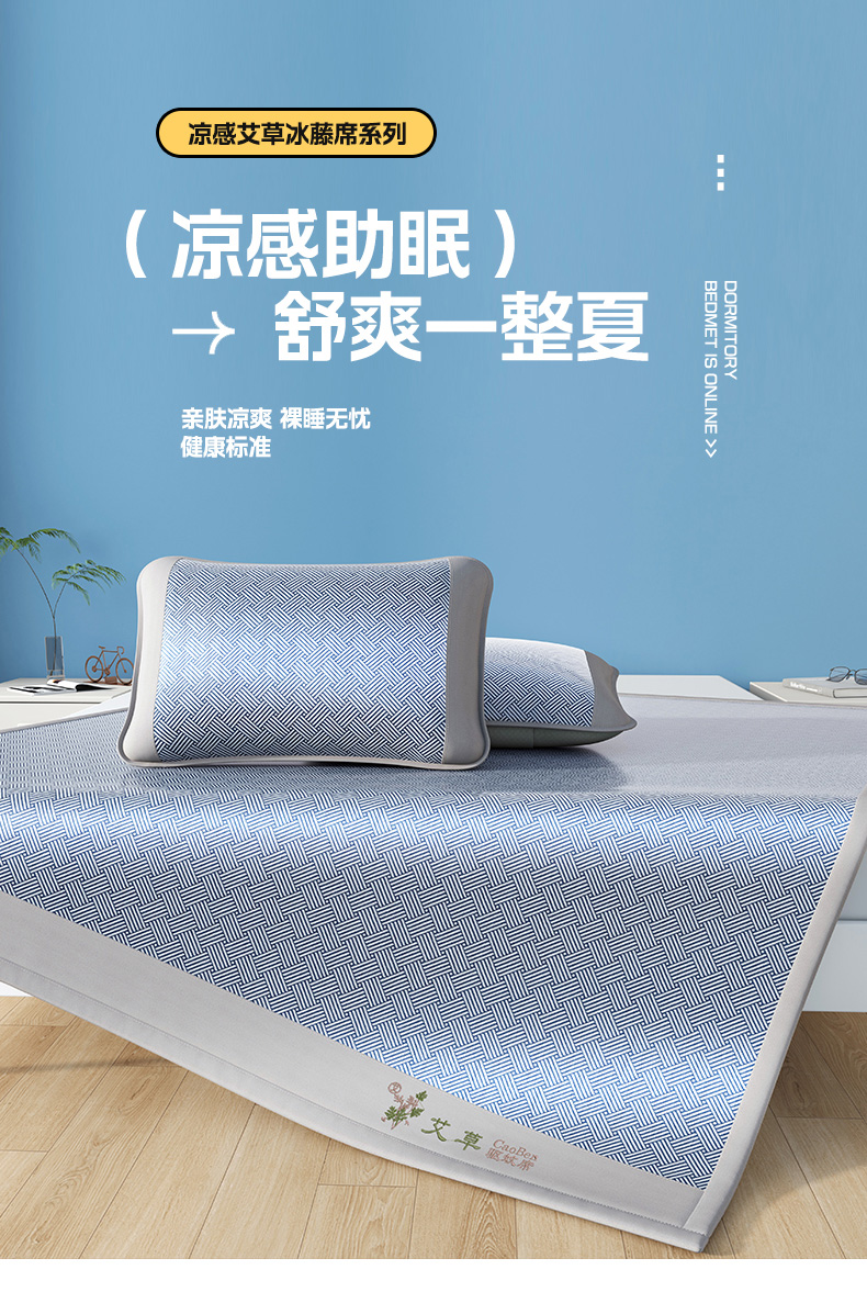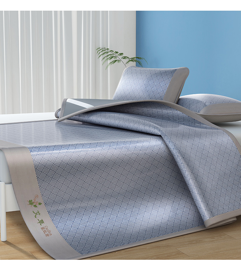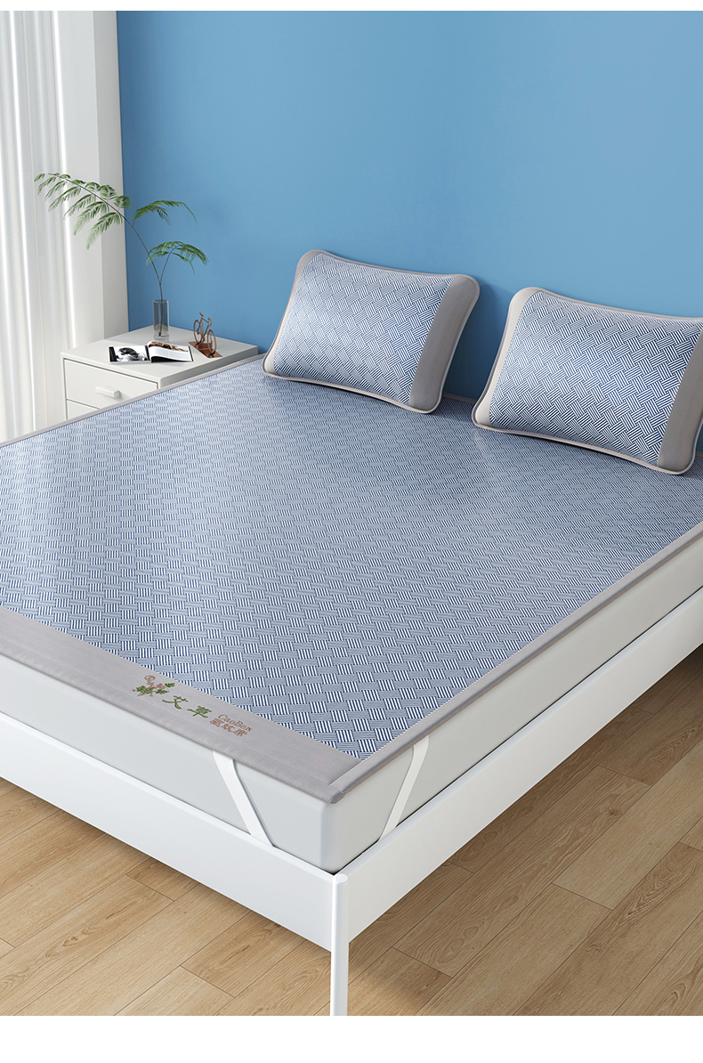 (总)步步高席业 2026新款艾草冰丝席饼干花凉席三件套