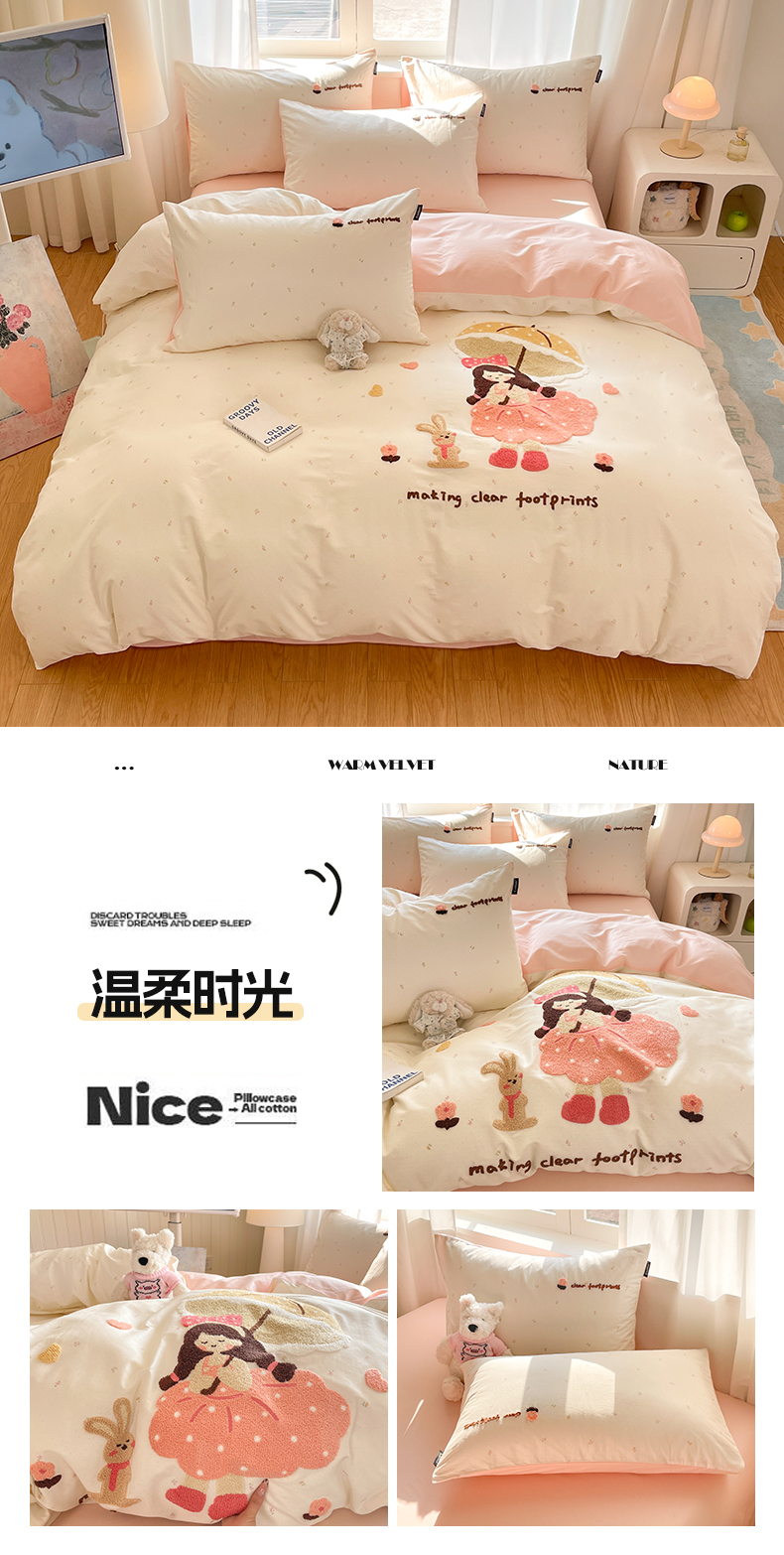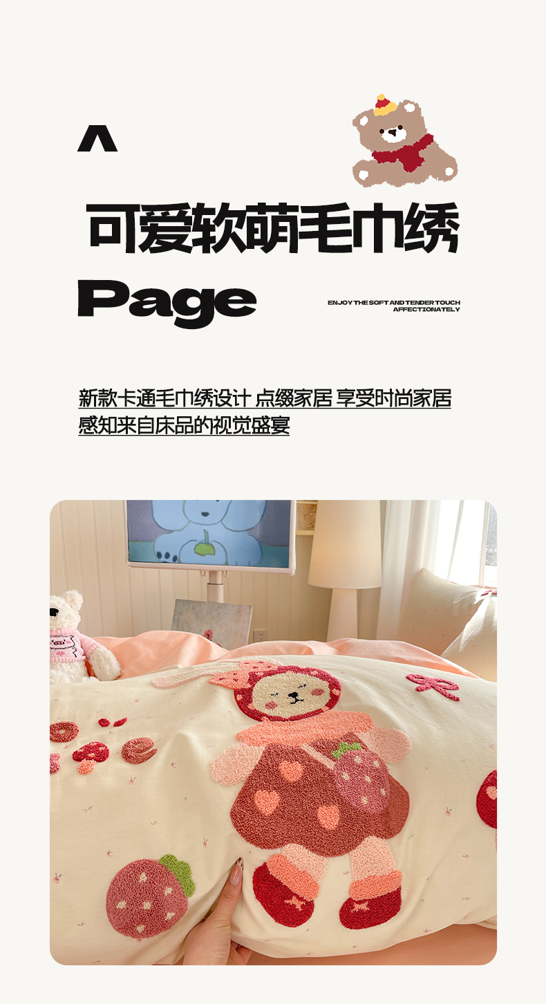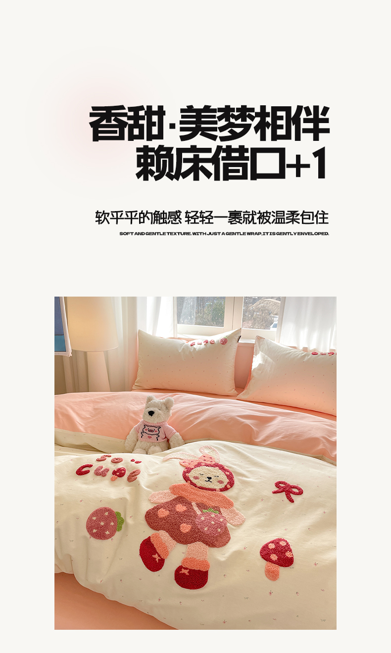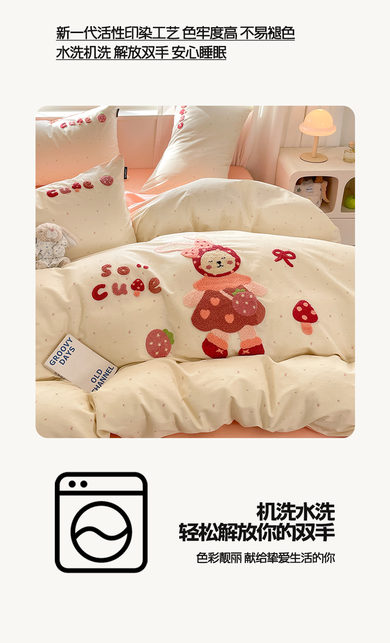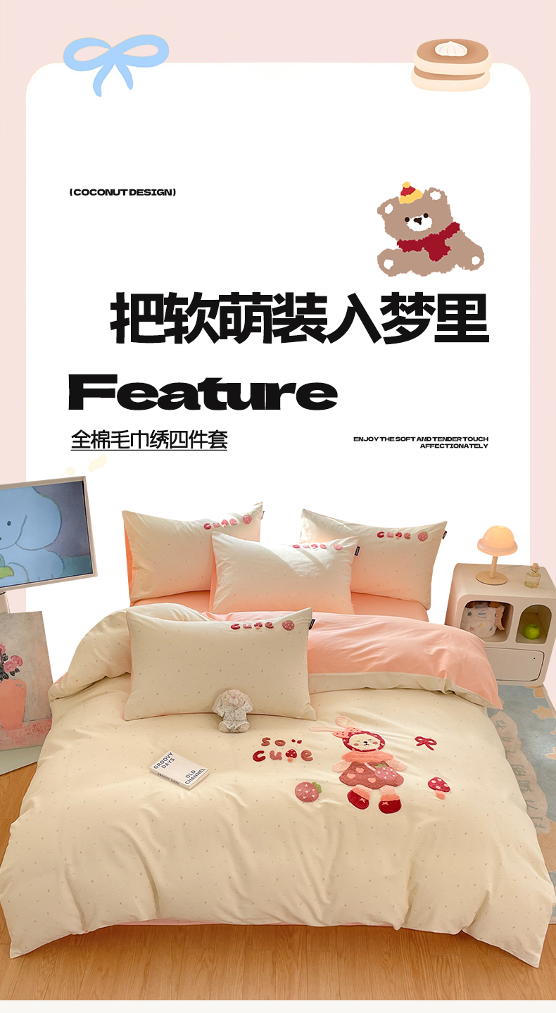商品名称:涵宸家纺 2026新款全棉印花毛巾绣四件套 甜心兔