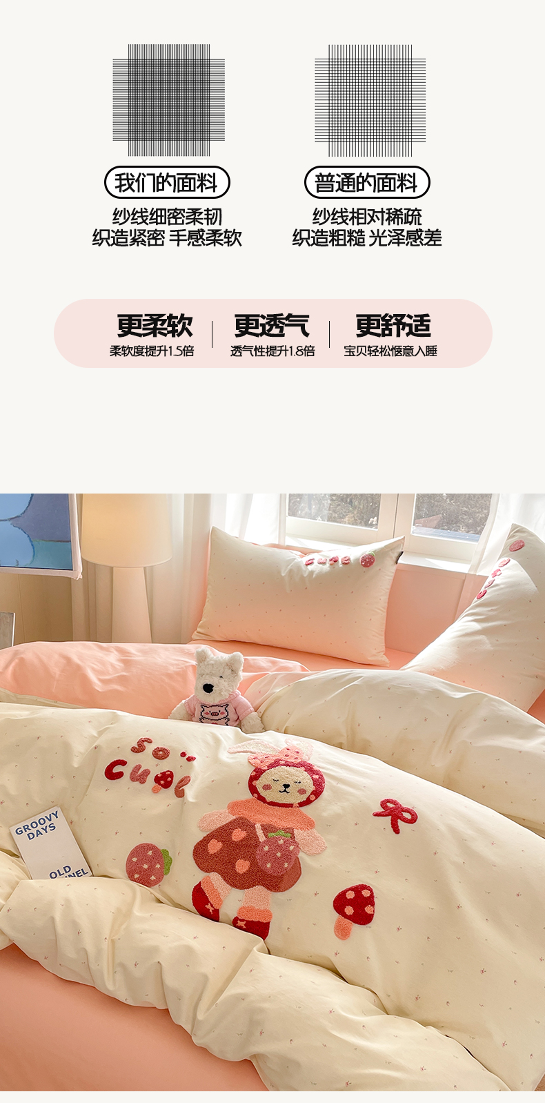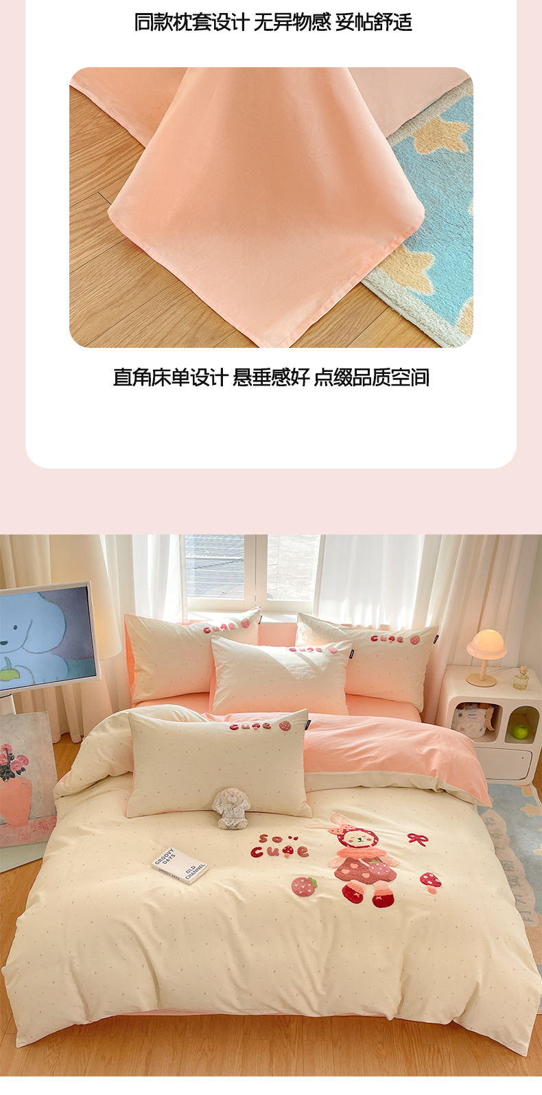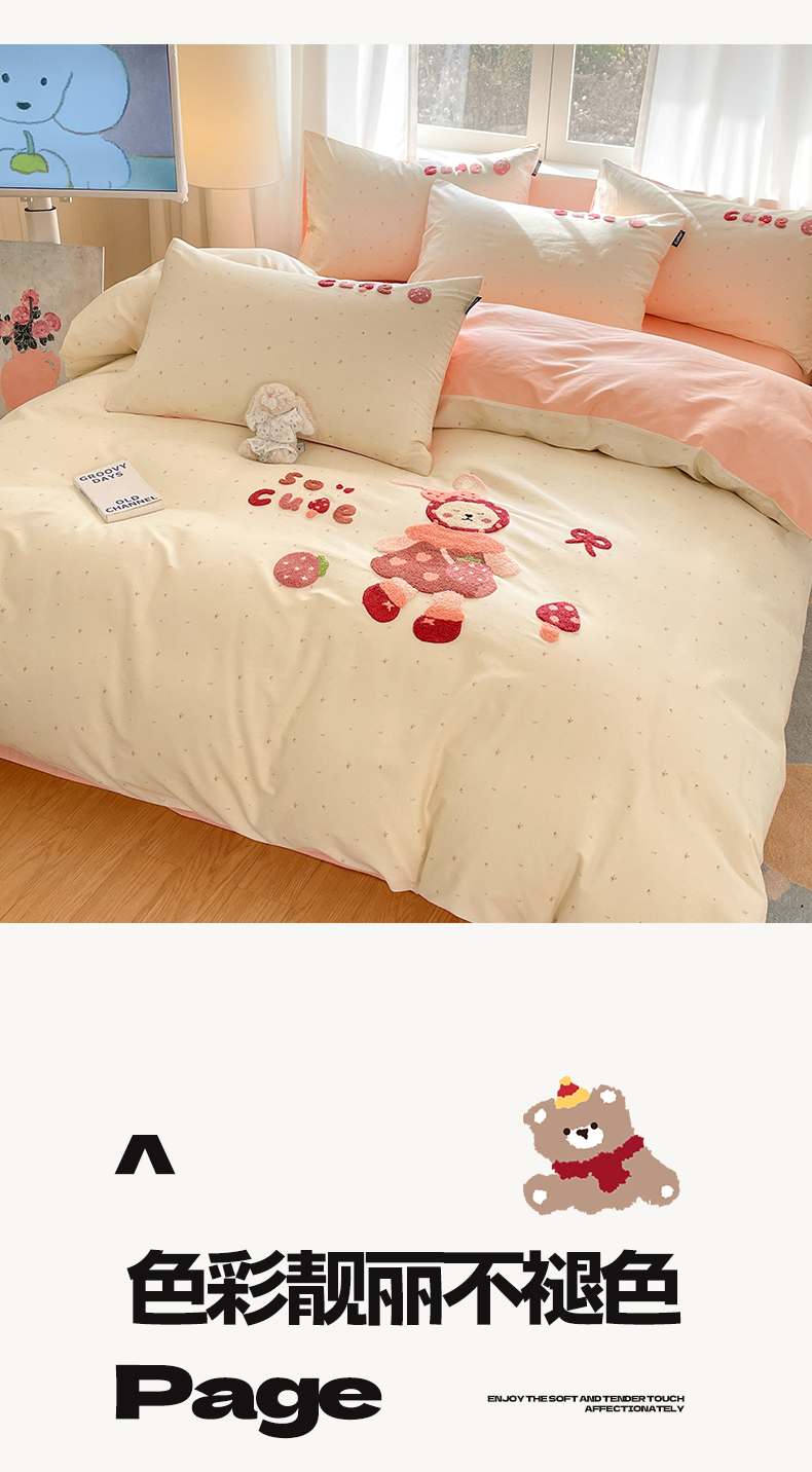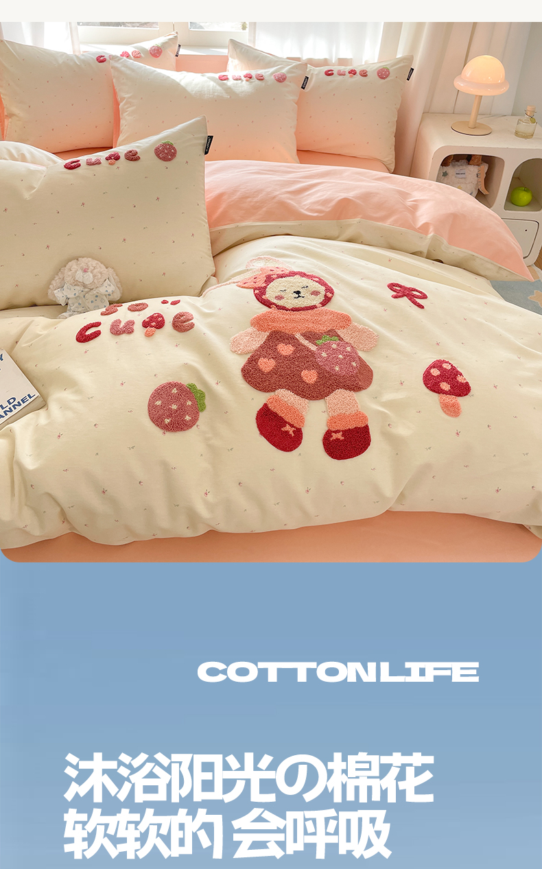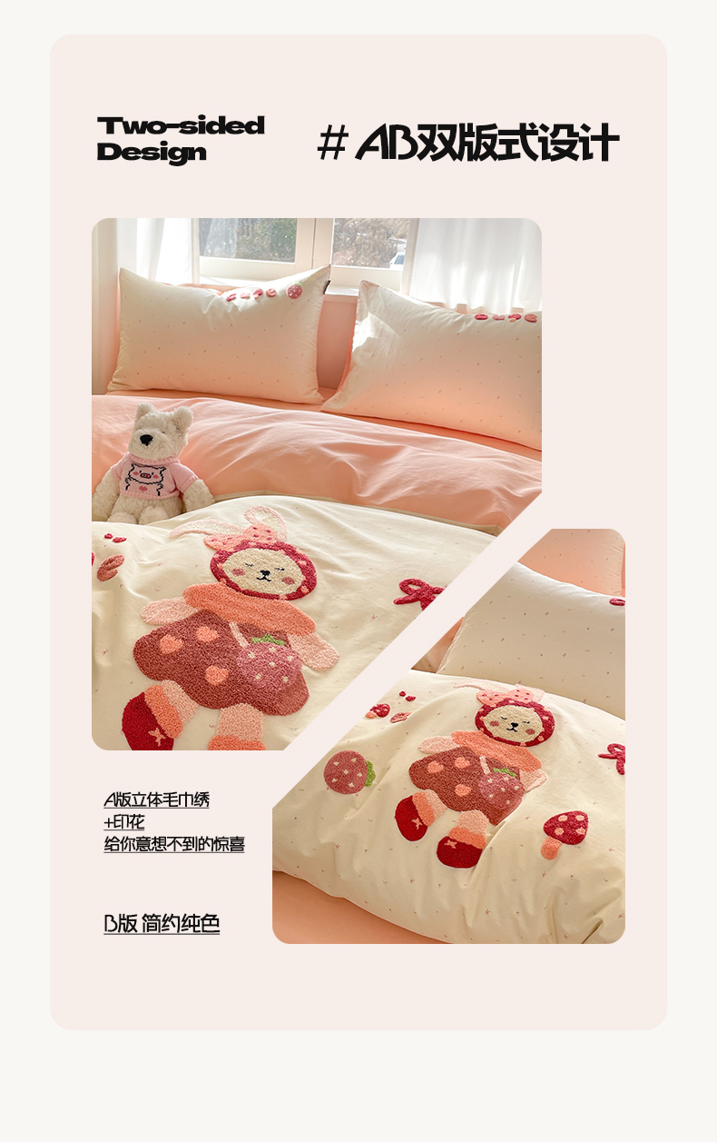 商品名称:涵宸家纺 2026新款全棉印花毛巾绣四件套 甜心兔