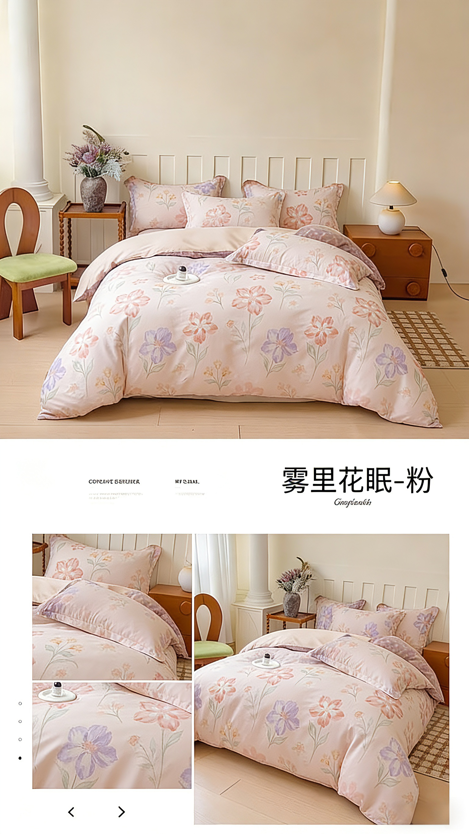 当前位置: 91家纺网 > 商品网购 > 床品套件 > 四件套 > 全棉普通四件套 > U品汇 2026新品纯棉全棉印花四件套小清新卡通花卉13070喷气 岚花绪-灰