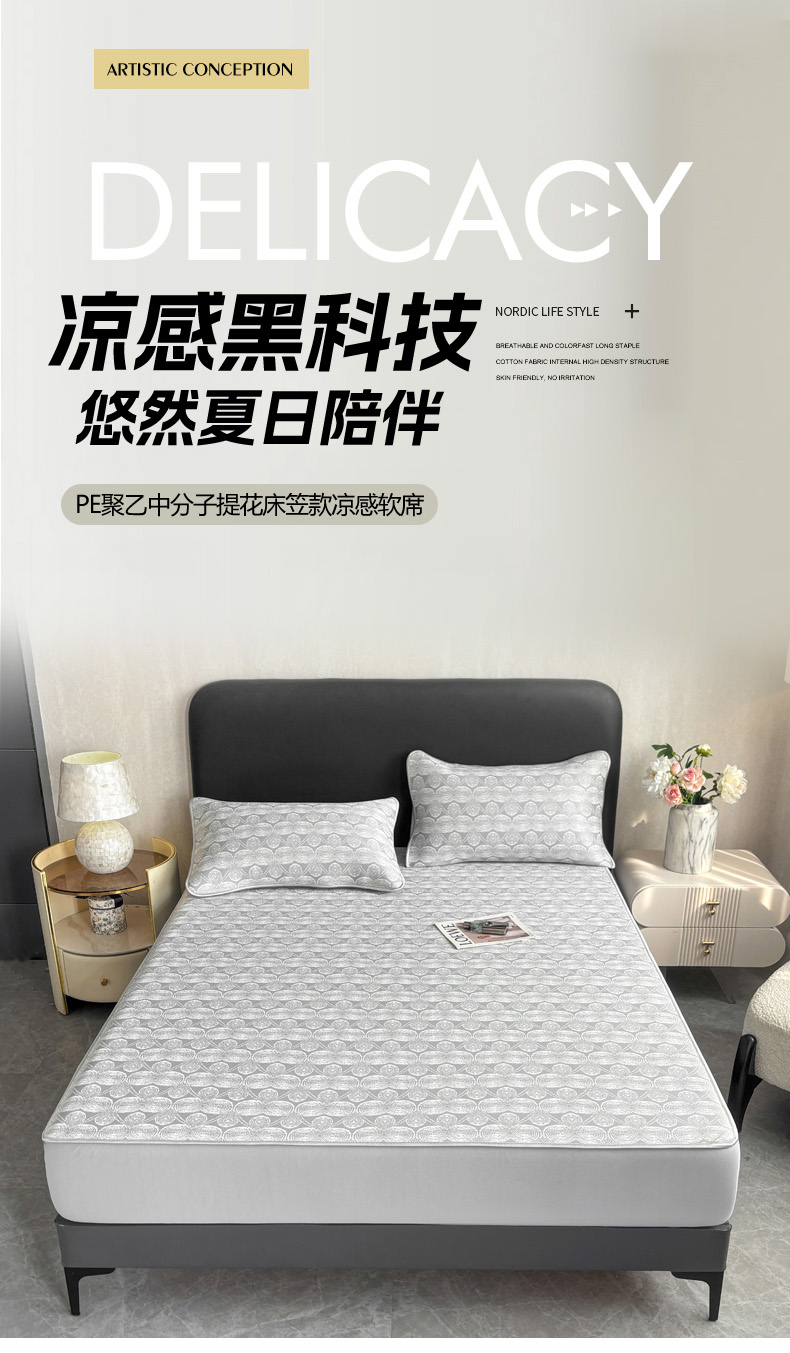 商品名称:麋兔 2026新款PE聚乙中分子提花床笠款凉席席子 雾影