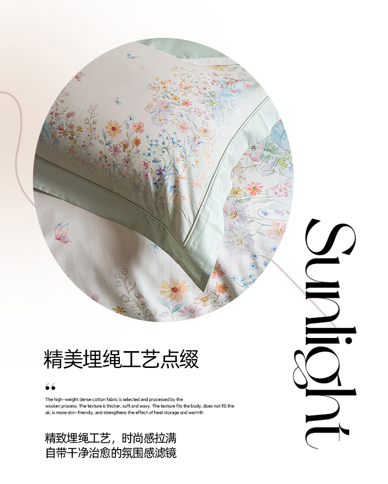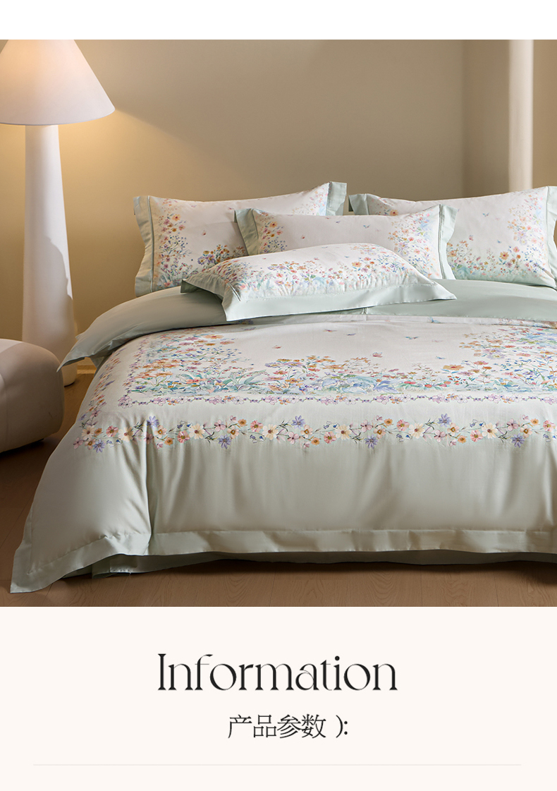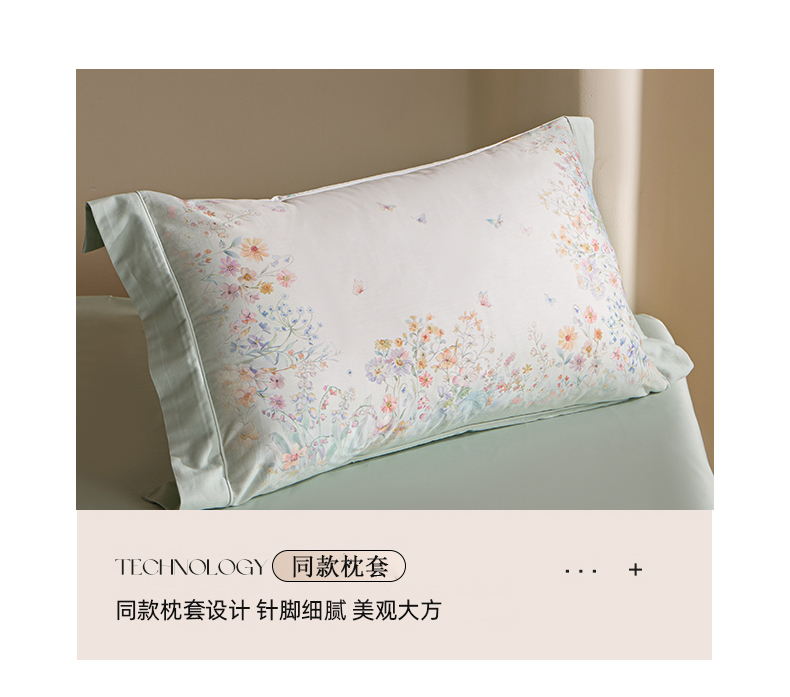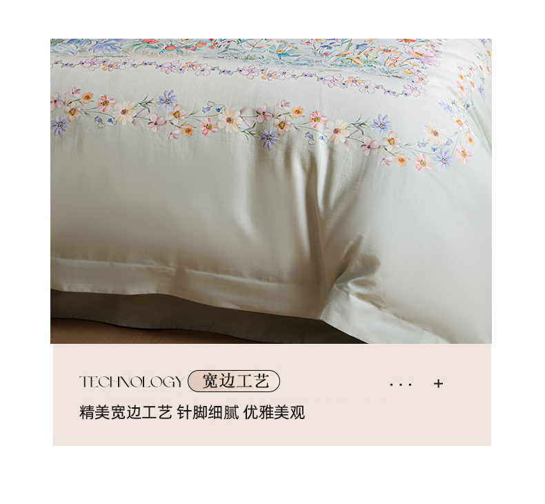 商品名称:U品汇 2026新品纯棉全棉平网大版数码印花四件套高端60支长绒棉贡缎埋绳宽边系列 花间逐梦(绿)