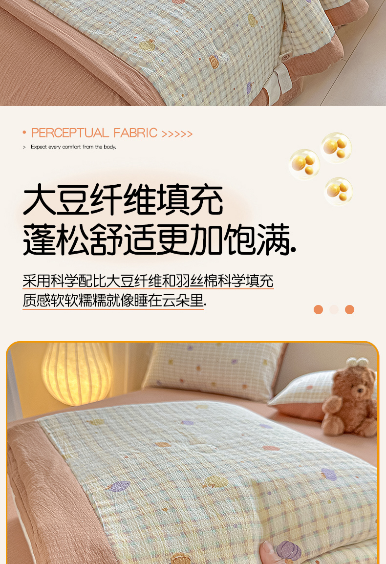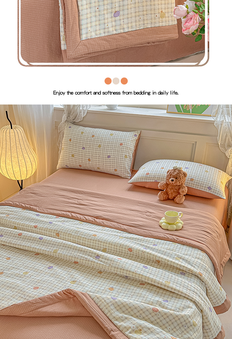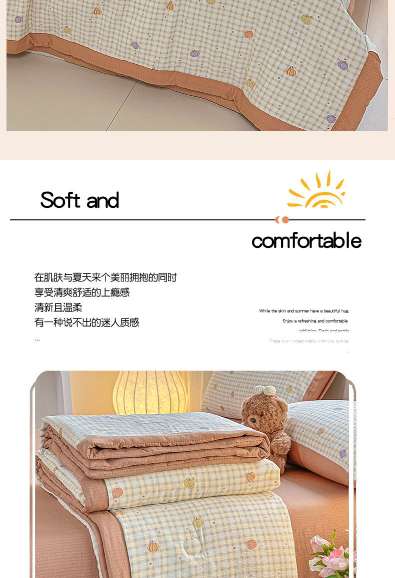 商品名称:晓时候 2026新款皱皱纱大豆夏被夏凉被空调被 南瓜小格