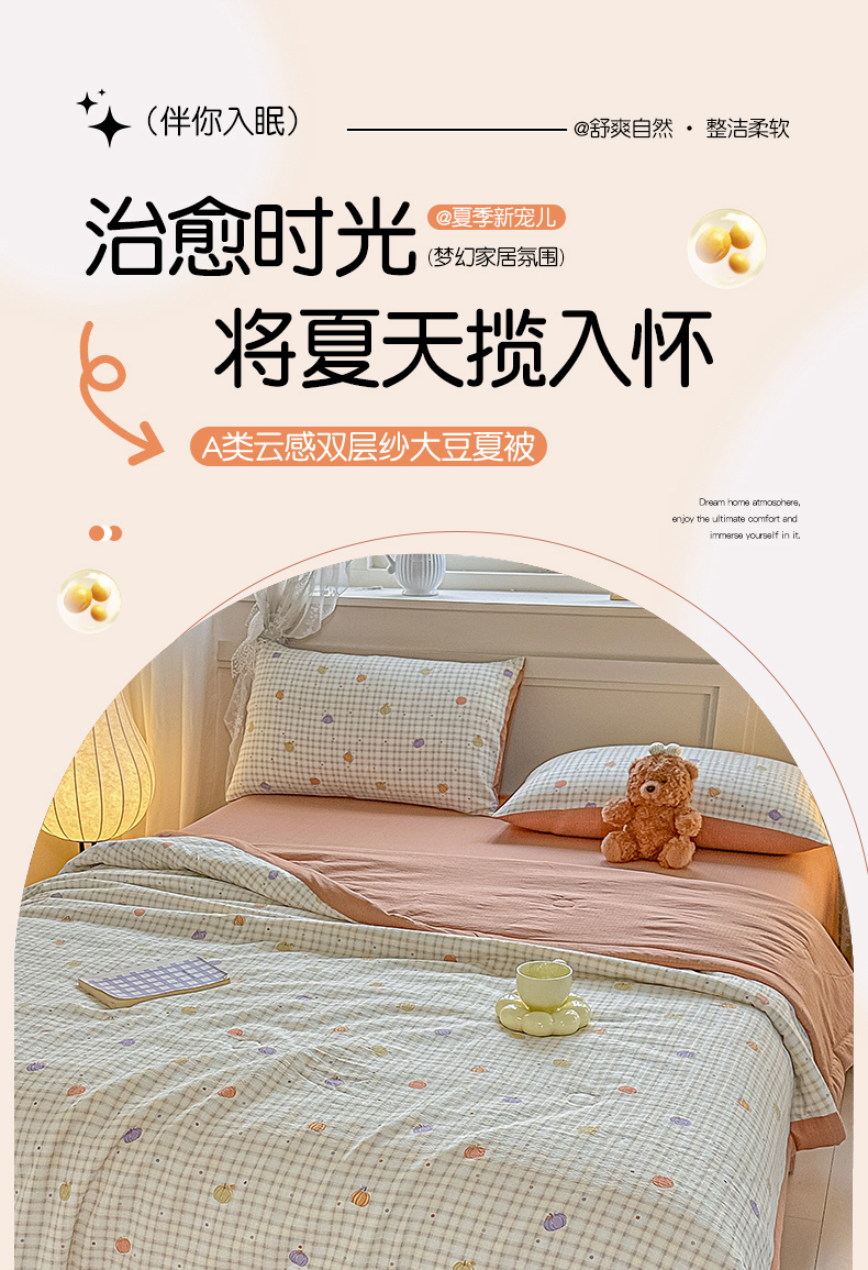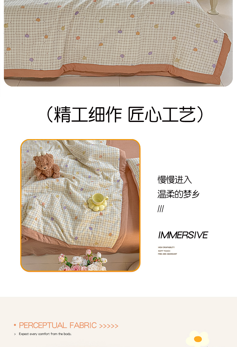 晓时候 2026新款皱皱纱大豆夏被夏凉被空调被 南瓜小格