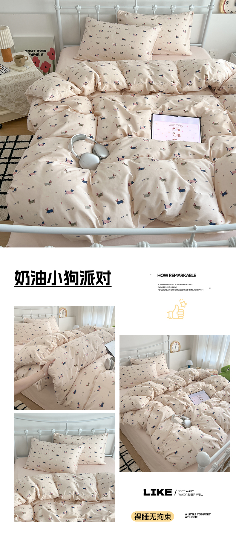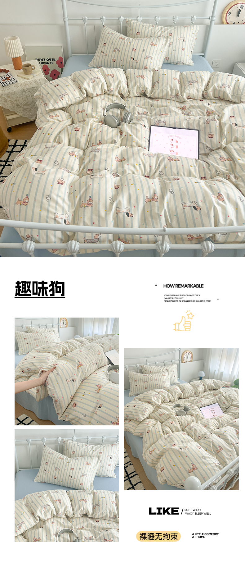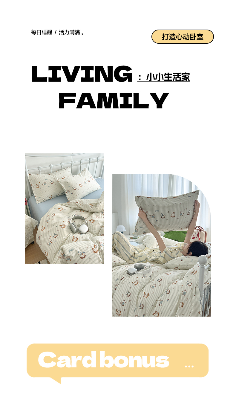 商品名称:(总)早晨家纺 2026新款INS减龄可爱风卡通40支全棉纯棉色织水洗棉四件套