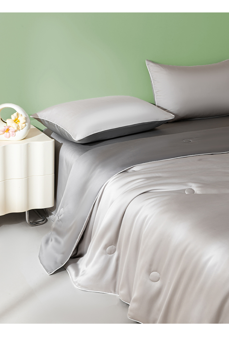 • 91家纺网 家纺一手货源 找家纺 云棉坊 2026新款水洗冰丝滚边款夏被-双拼系列 双拼-椰子灰+经典灰