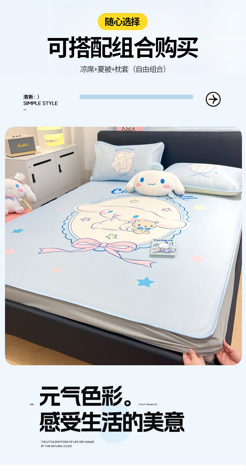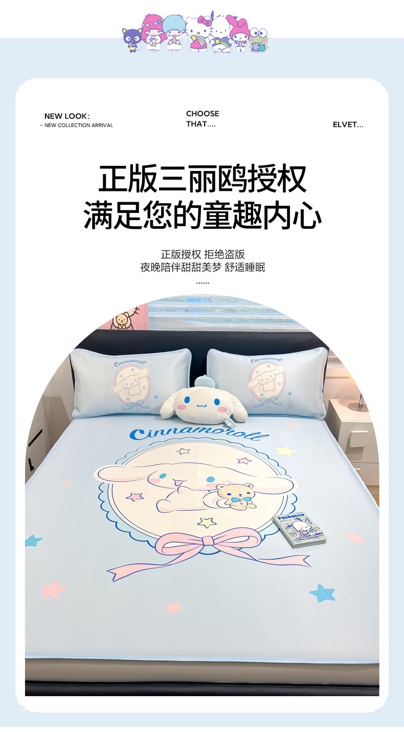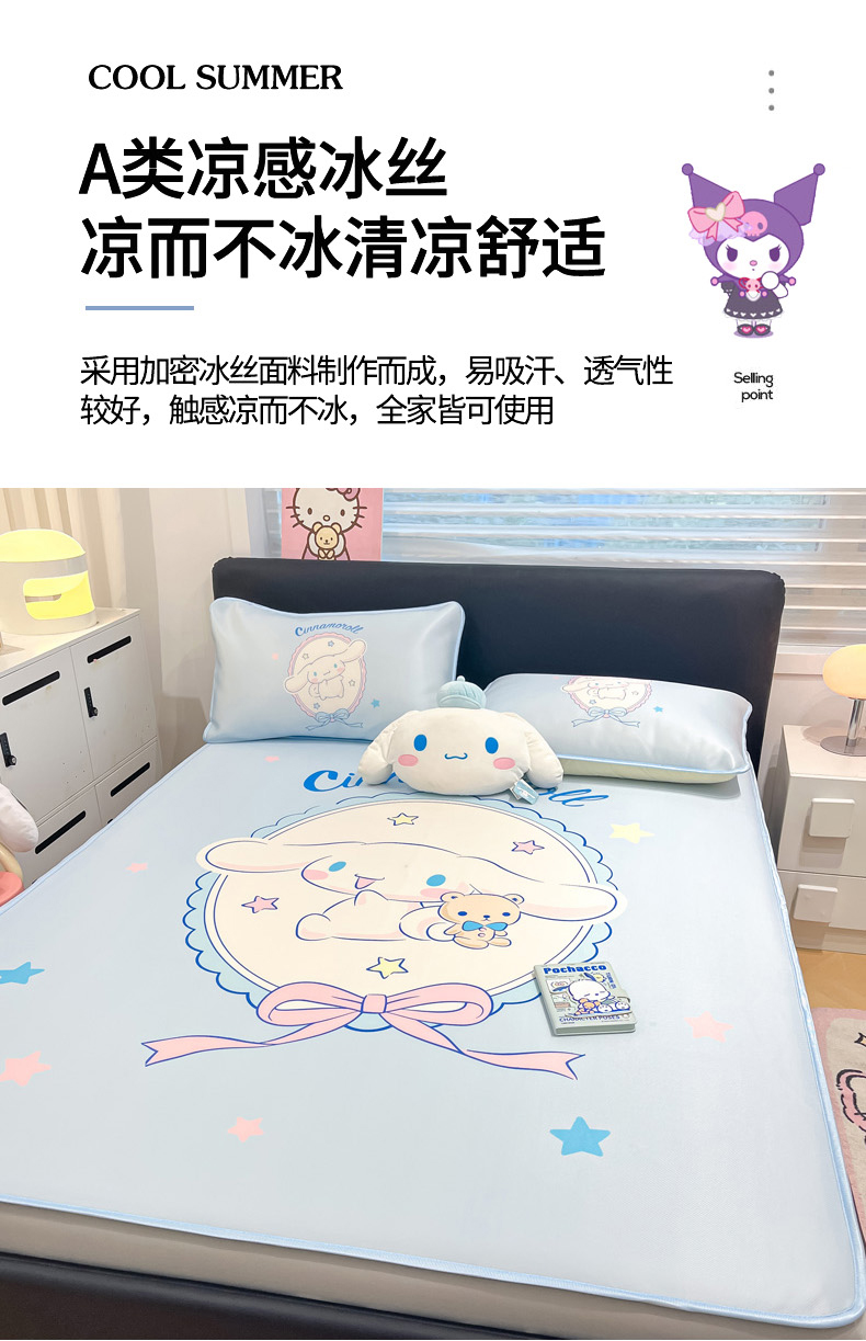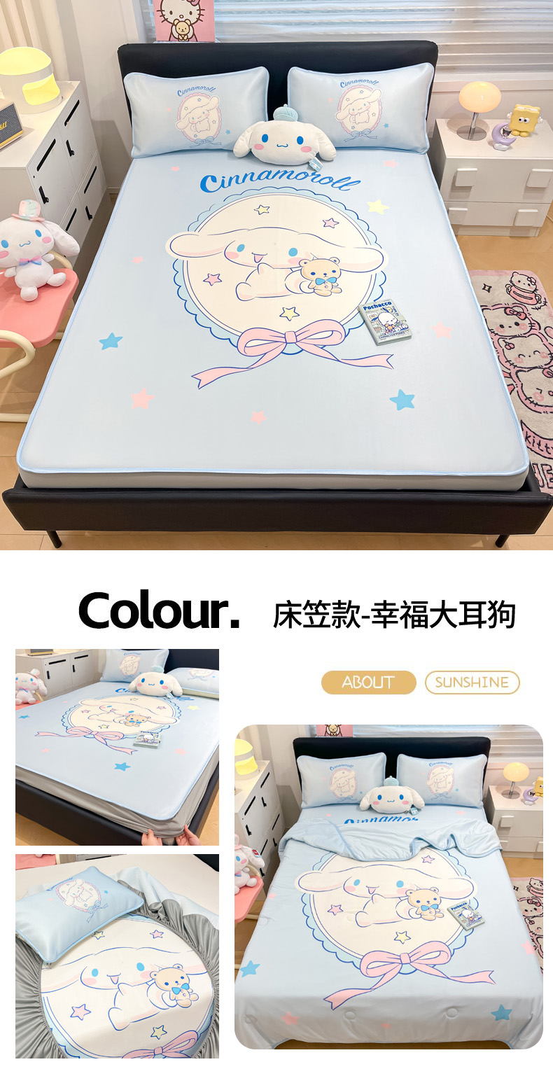 当前位置: 91家纺网 > 商品网购 > 床上用品 > 凉席 > 冰丝席 > 暮思家居 2026新款正版授权A类大版数码印花三丽鸥1200D冰丝凉席可组合仿锦氨夏被 床笠款-幸福大耳狗