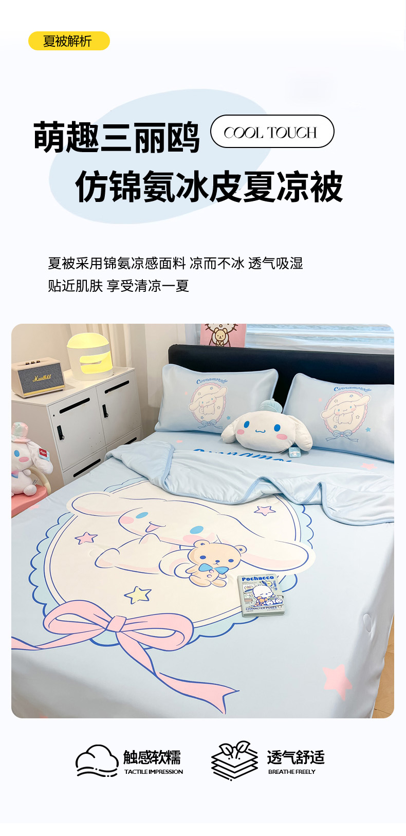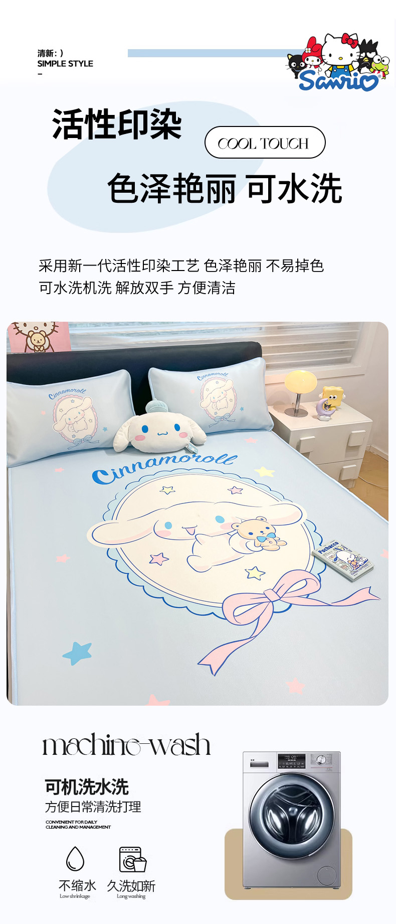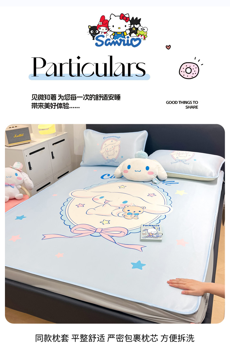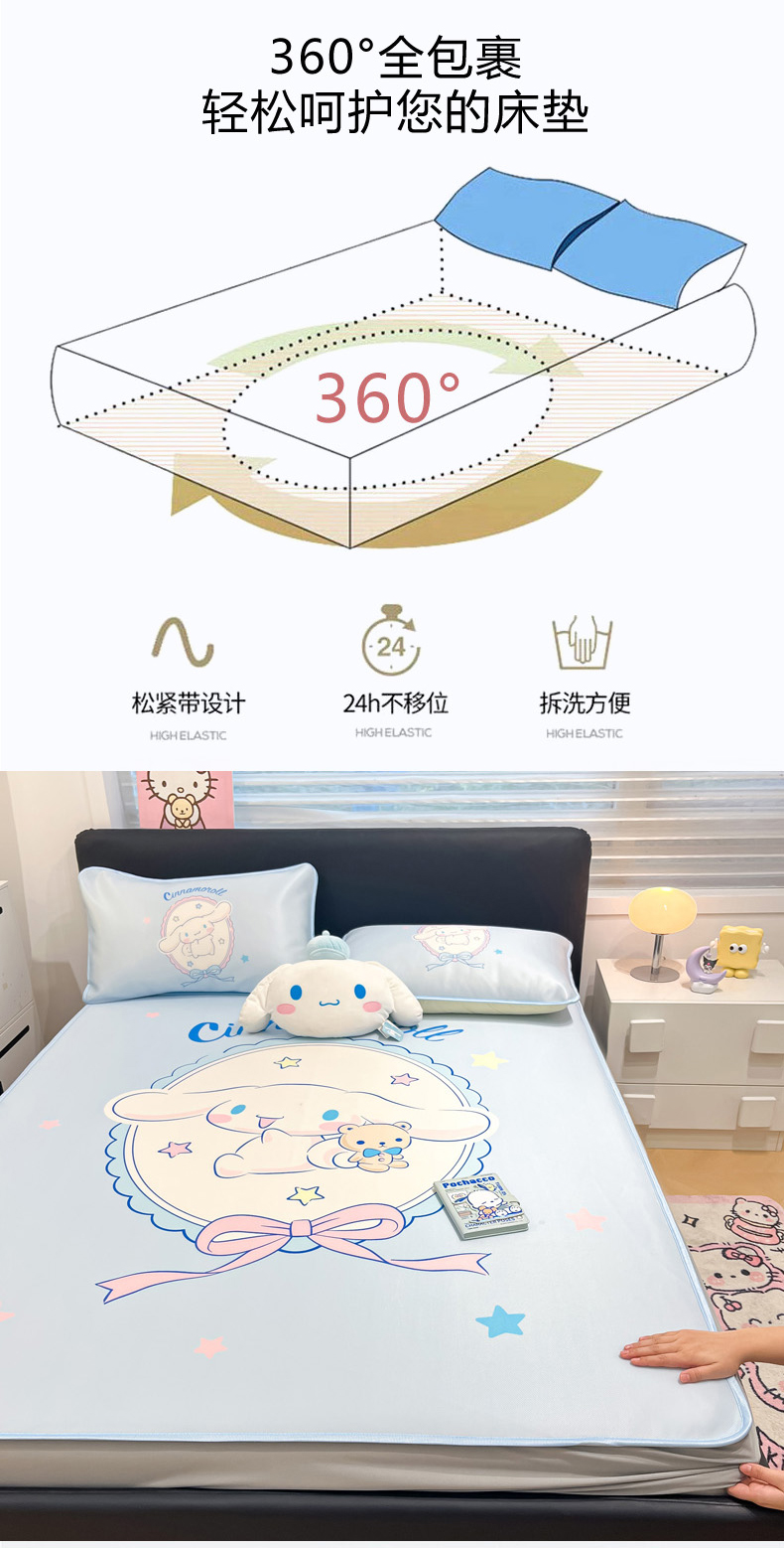 当前位置: 91家纺网 > 商品网购 > 床上用品 > 凉席 > 冰丝席 > 暮思家居 2026新款正版授权A类大版数码印花三丽鸥1200D冰丝凉席可组合仿锦氨夏被 床笠款-幸福大耳狗
