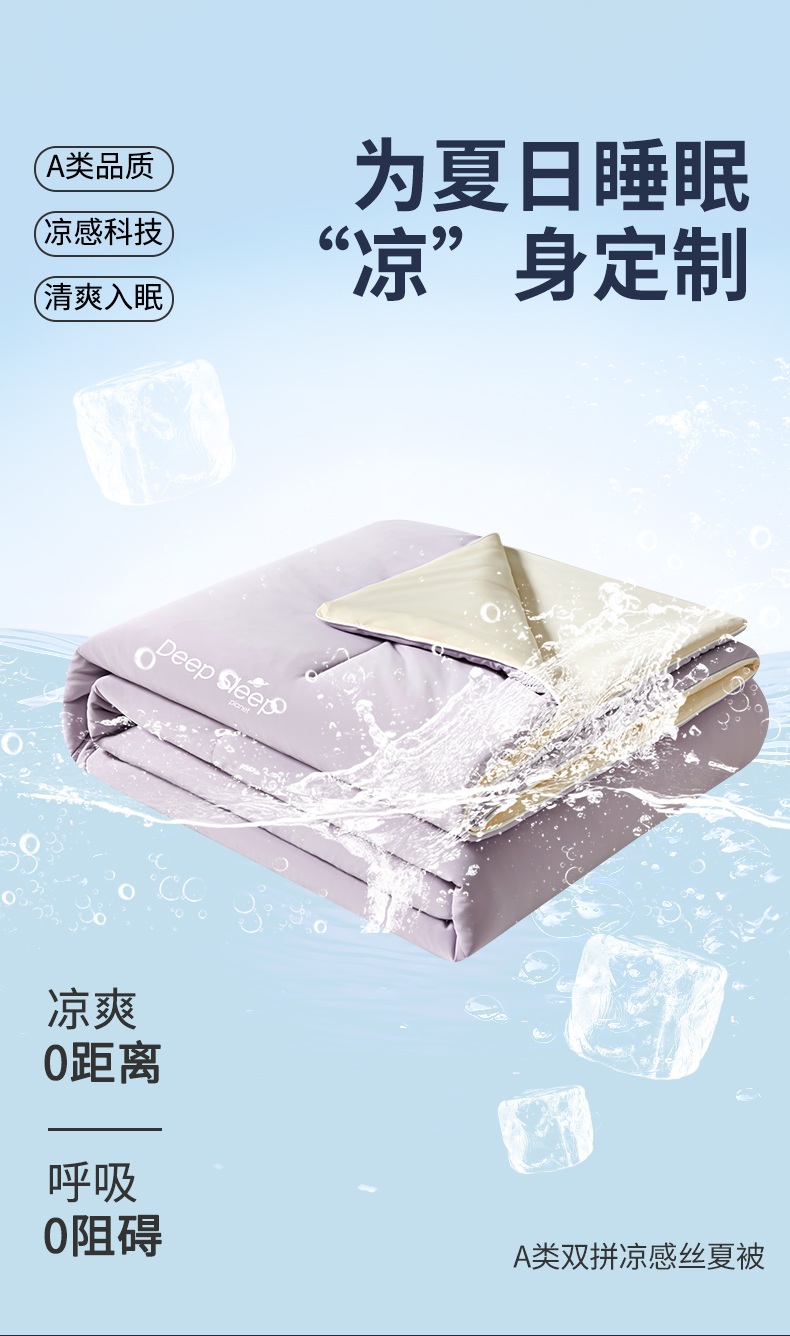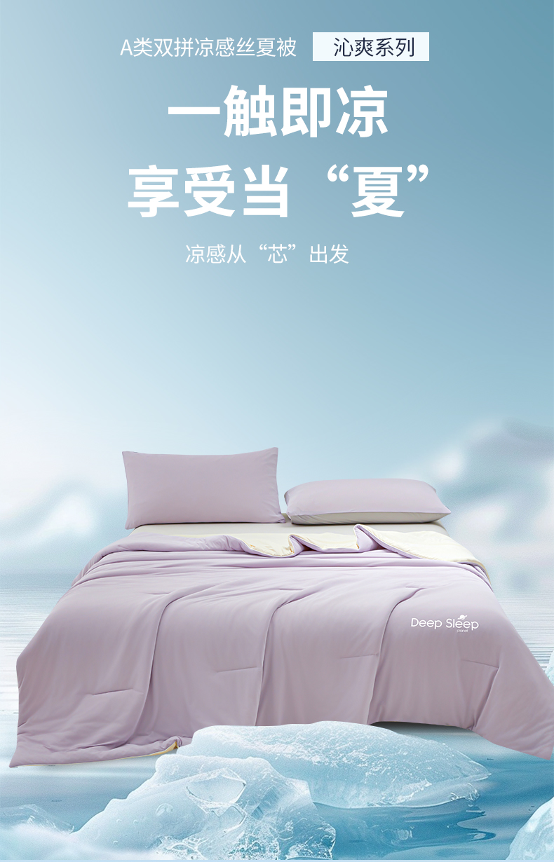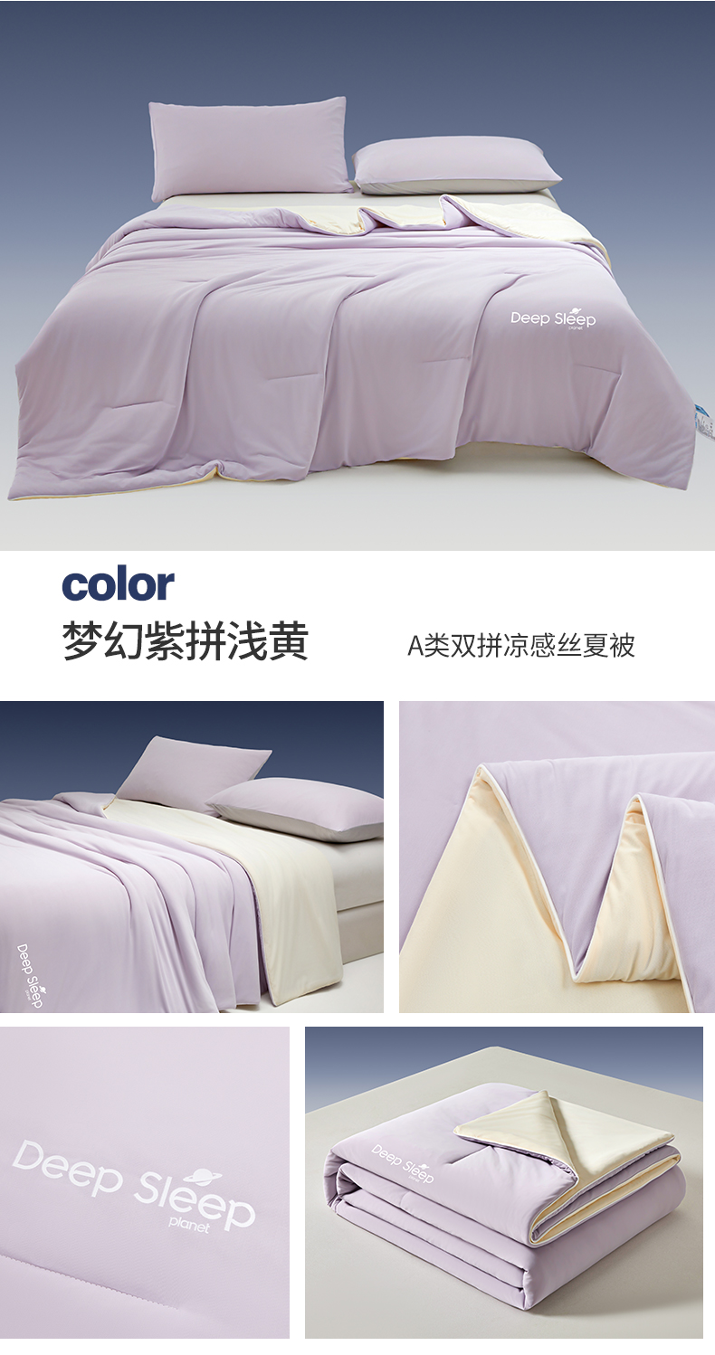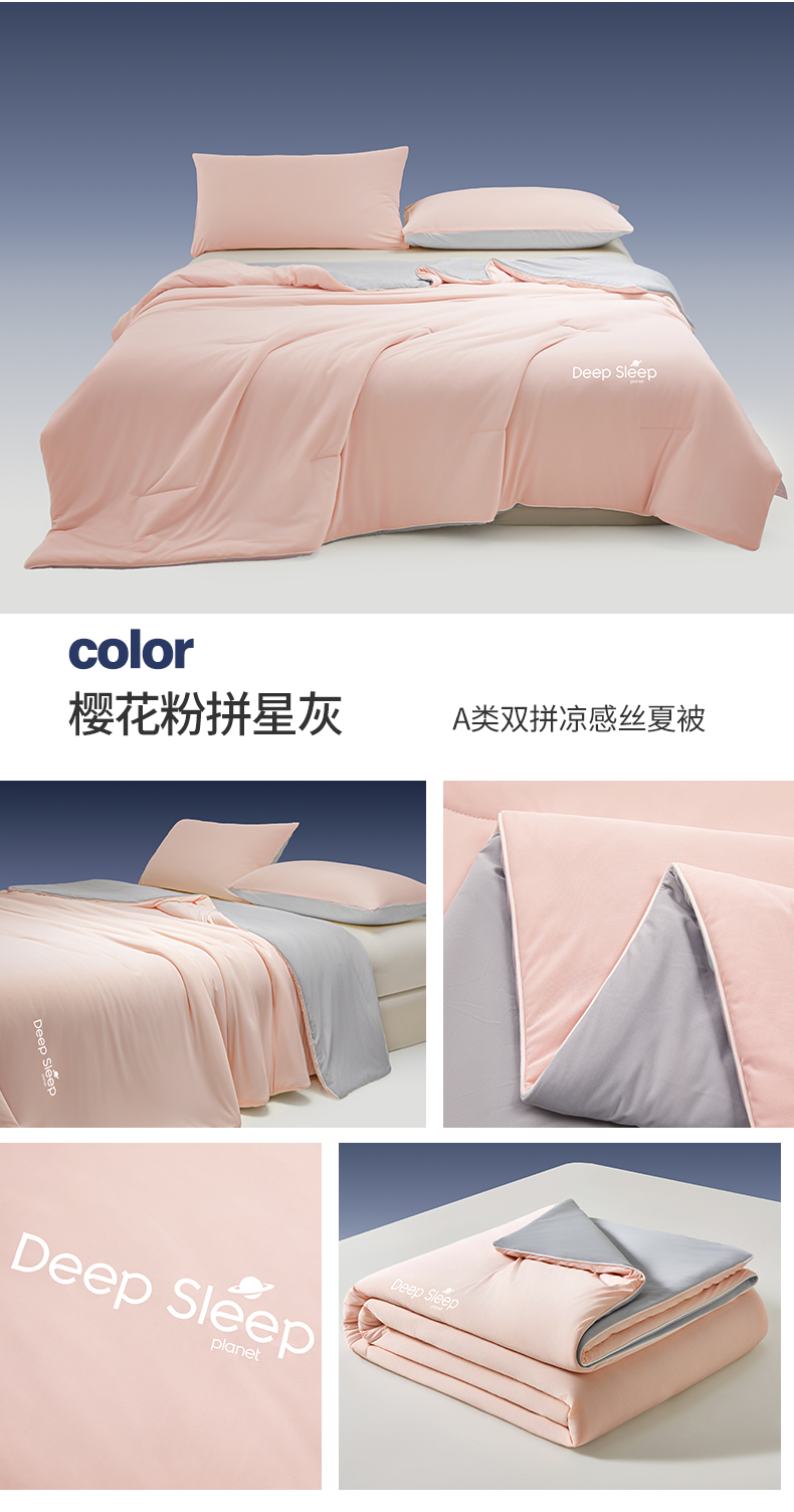 商品名称:玉相逢 2026新款深睡眠高克重凉感丝夏被夏凉被空调被 樱花粉拼星灰