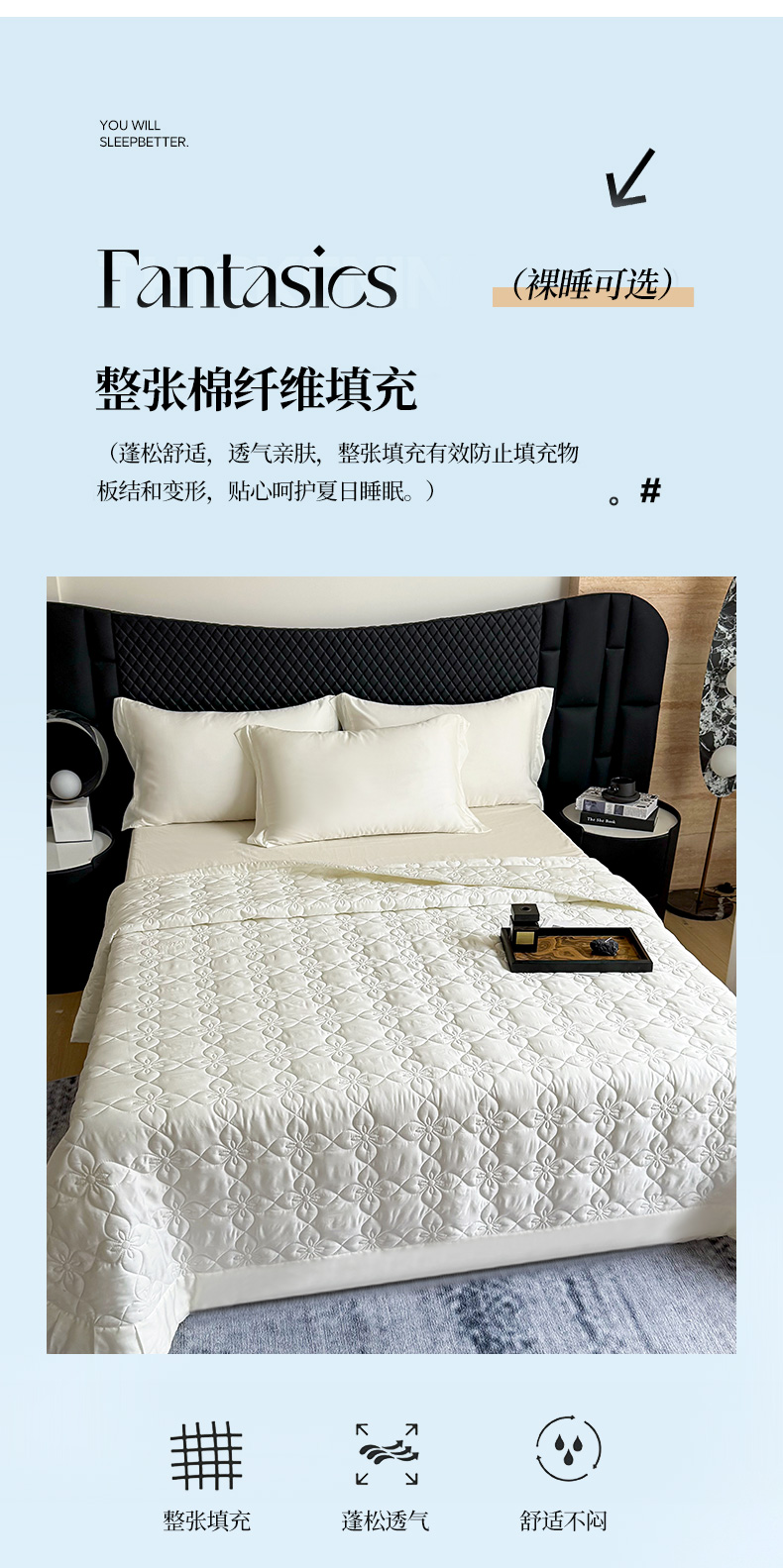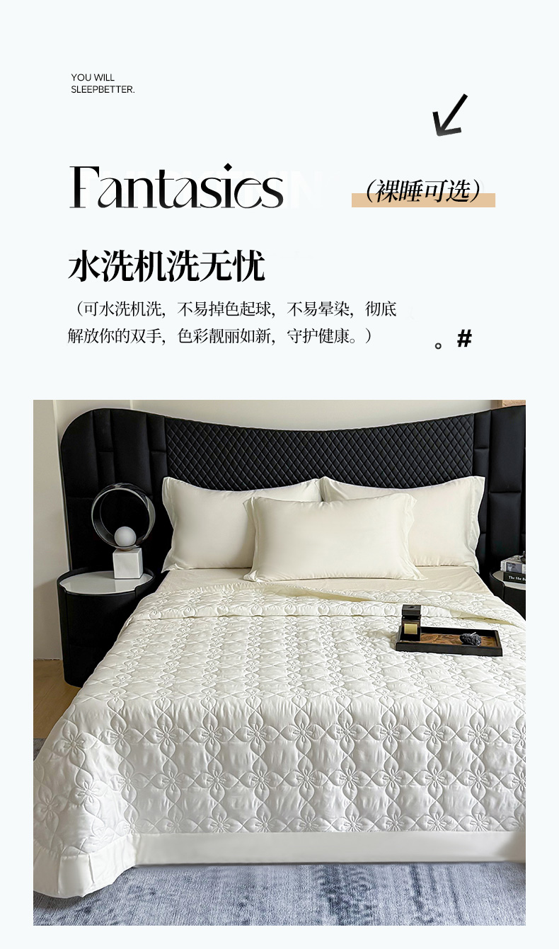 (总)三俏家纺 2026新款60支天丝A类镂空床盖款夏被四件套纯色20%大豆蛋白【包质检】,奶芙白,暮光紫,暮云灰,海盐蓝,薄荷绿