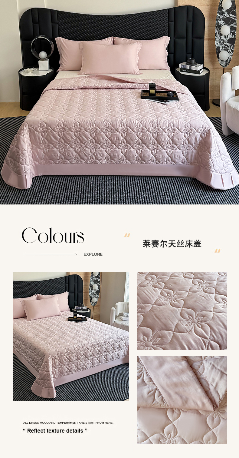 (总)三俏家纺 2026新款夏被100%莱赛尔天丝纯色床盖款夏被四件套60支天丝夏凉被,灰粉色,裸粉色,米白色,雾霾蓝,香芋紫