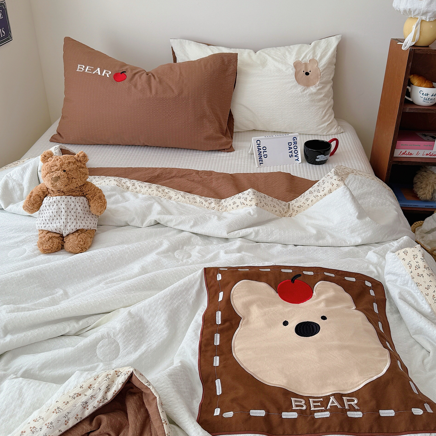 (总)顾里家纺 2026新款复古甜心泡芙纱贴布绣夏被夏凉被空调被,标签熊,啵啵熊,布丁鸡,草莓喵,甜岛熊,雪宝鹅,组合图仅做展示不可下单