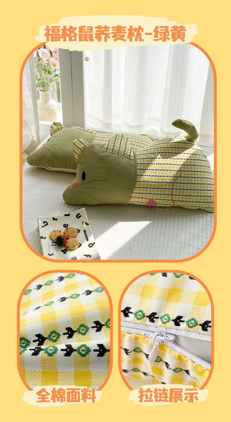 商品名称:(总)梦叶草 2026新款全棉贴布绣福格鼠荞麦枕