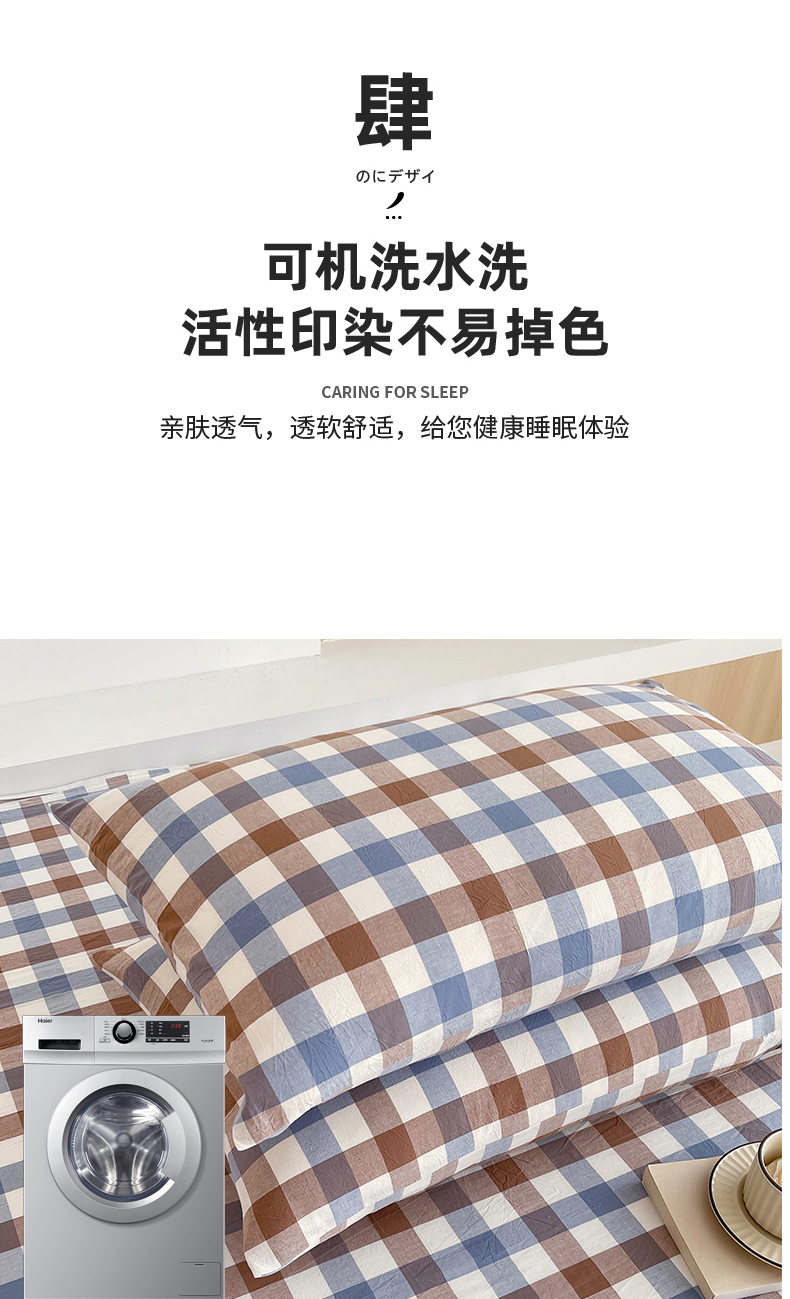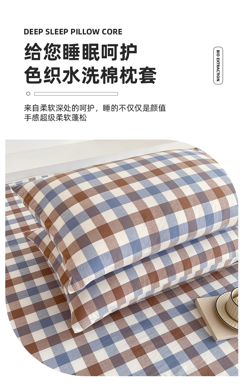 春皖家纺 2026春夏新款全棉水洗棉单枕套枕套单件单品枕套 翠竹-彩格