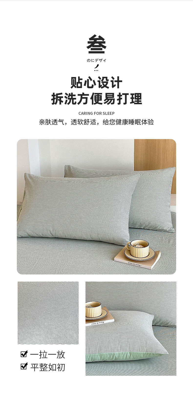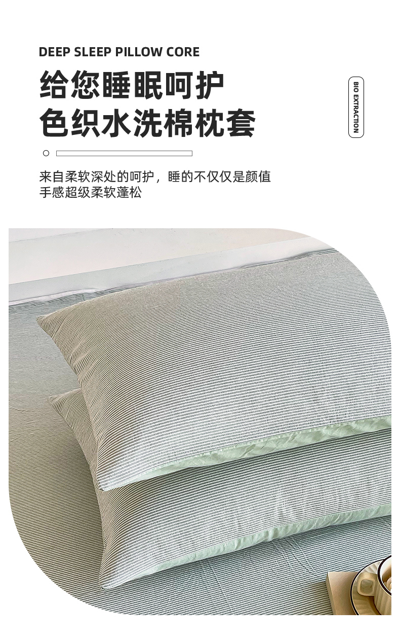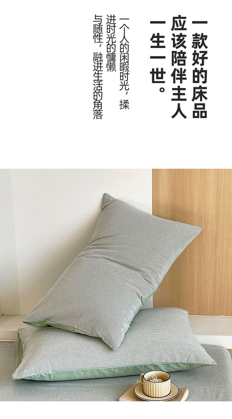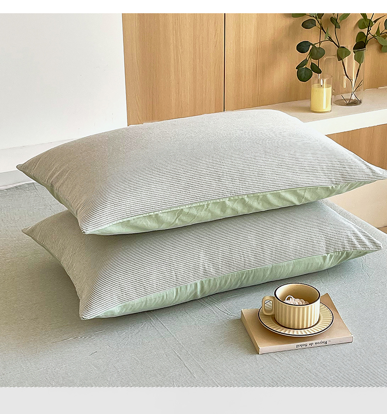 春皖家纺 2026春夏新款全棉水洗棉单枕套枕套单件单品枕套 细条绿