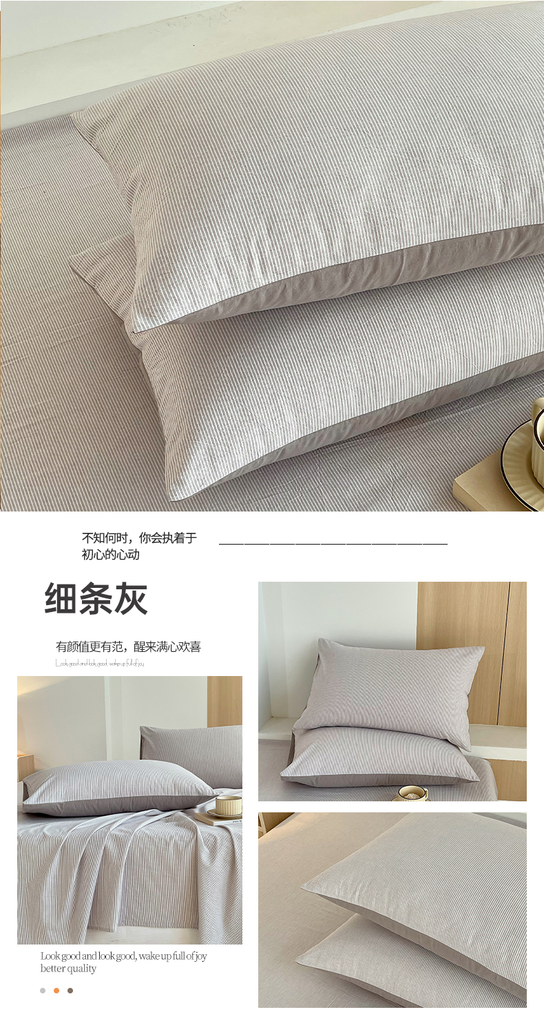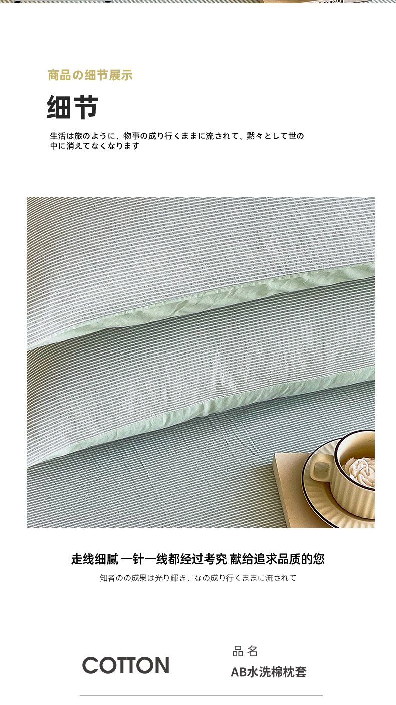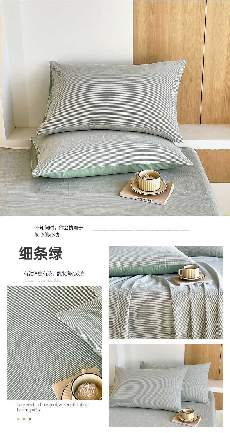 商品名称:春皖家纺 2026春夏新款全棉水洗棉单枕套枕套单件单品枕套 细条绿