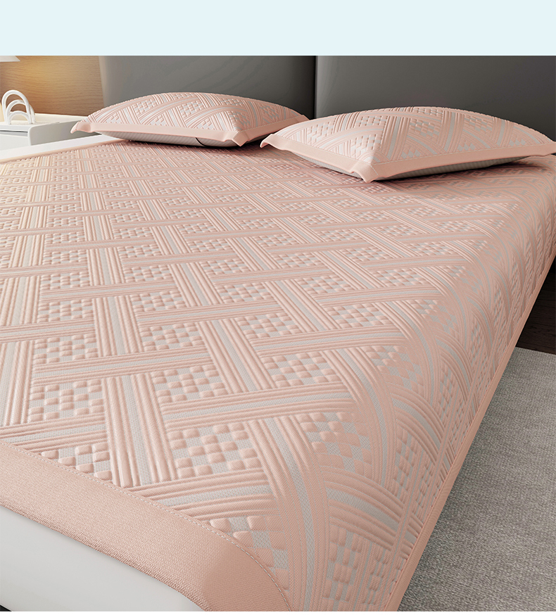 商品名称:雅诗帛 2026新款PE凉感床笠款冰丝席三件套-织序 床笠织序-粉
