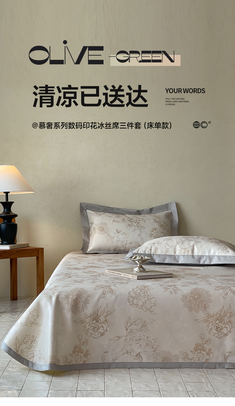 (总)三味舒屋 2026新款 凉感抗菌防螨印花冰丝养生席(新升级7A抗菌),花非花 床席,花非花 床笠,雾非雾 床席,雾非雾 床笠