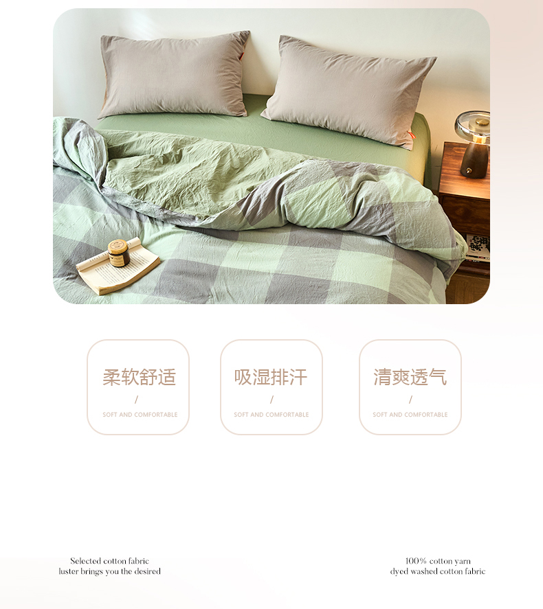 商品名称:春皖家纺 2026春夏新款全棉纯棉水洗棉单被套被套单件单品被套 素雅-清格