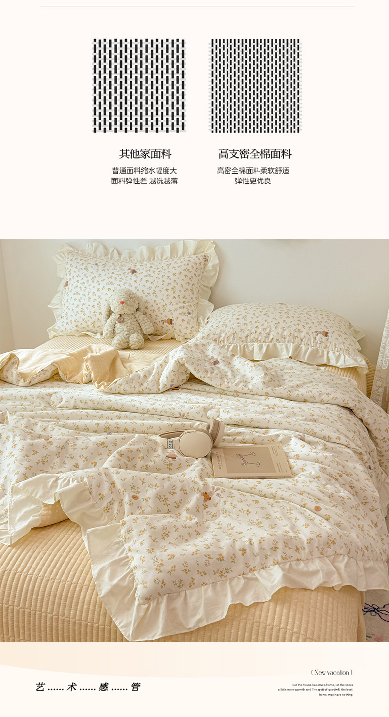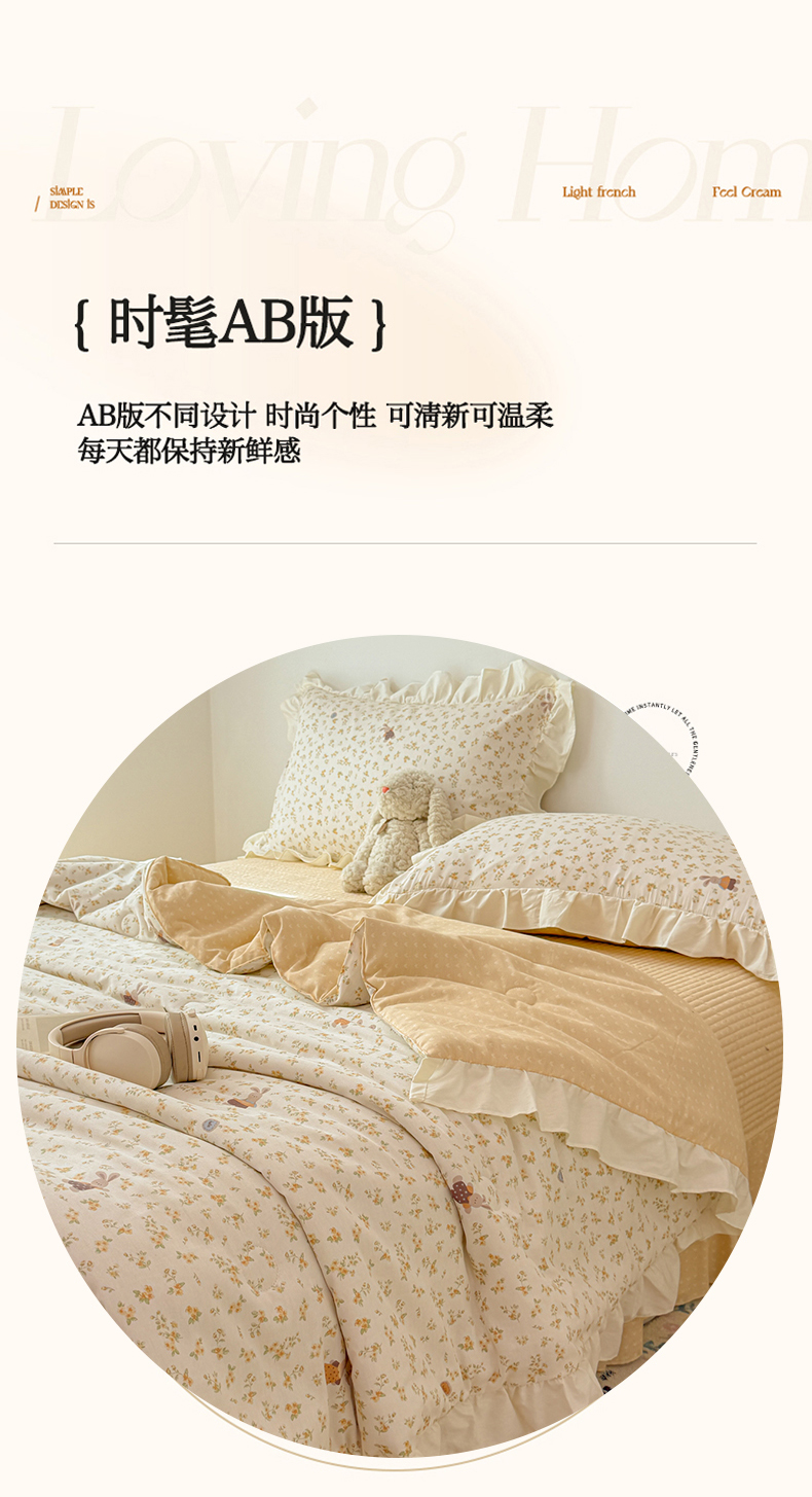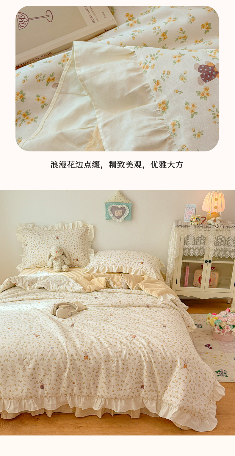 当前位置: 91家纺网 > 商品网购 > 床品套件 > 四件套 > 夏被四件套 > 简宜家居(朝初家纺) 2026新款全棉花边夏被全棉床盖夏被四件套 暖菊花兔