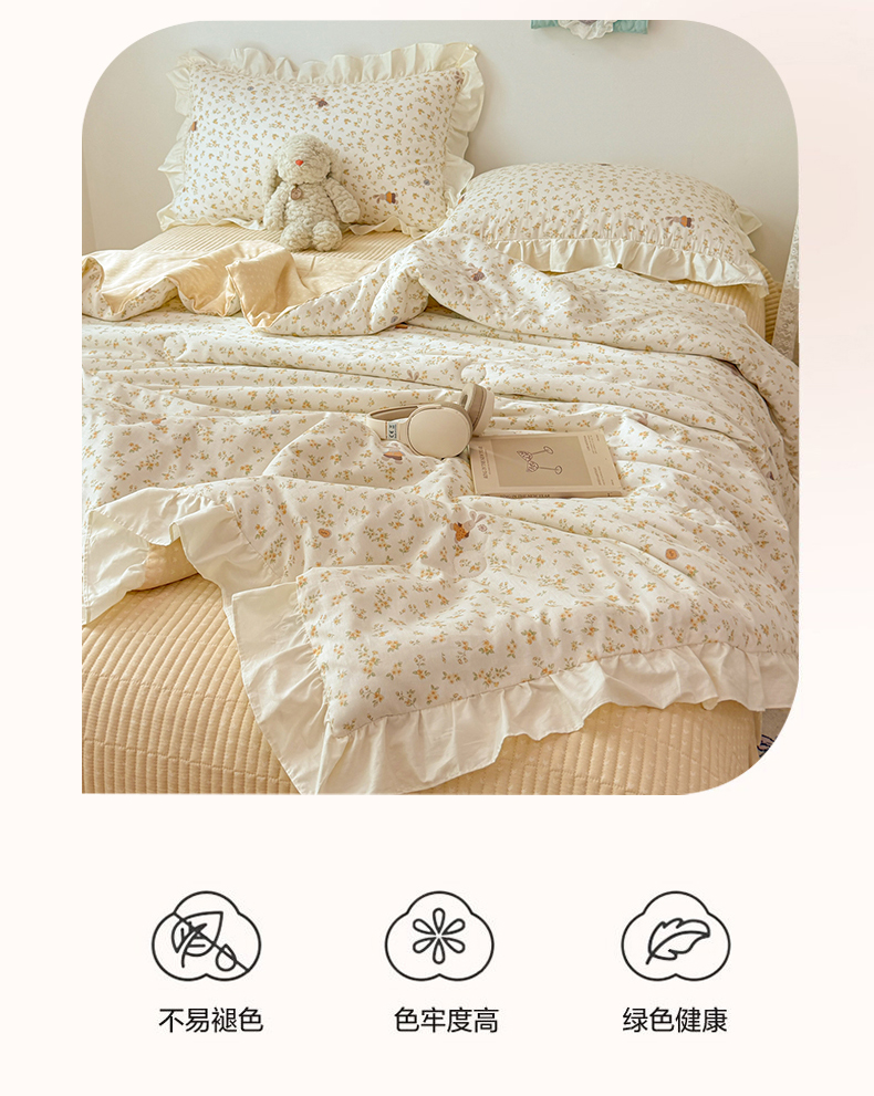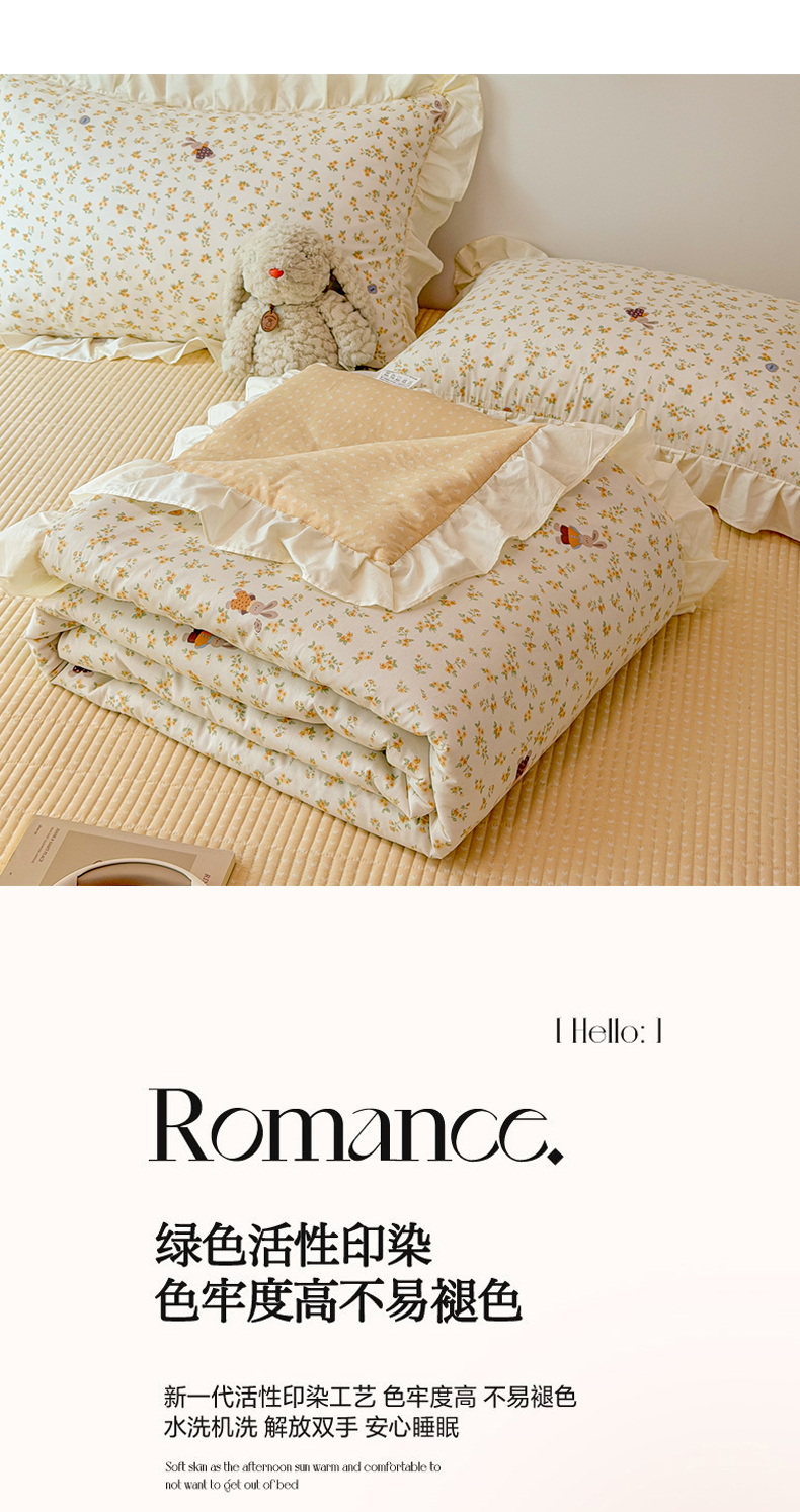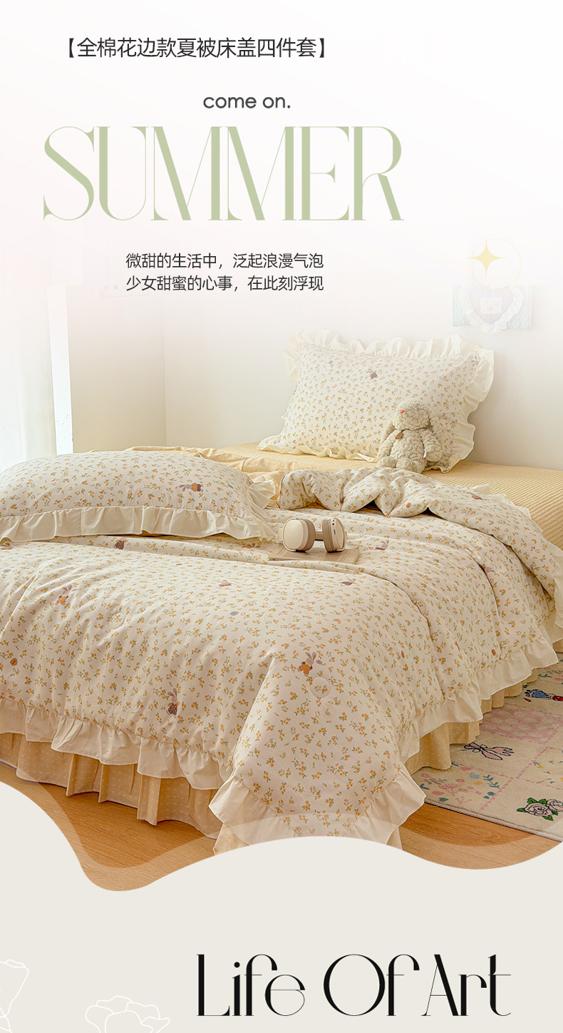 当前位置: 91家纺网 > 商品网购 > 床品套件 > 四件套 > 夏被四件套 > 简宜家居(朝初家纺) 2026新款全棉花边夏被全棉床盖夏被四件套 暖菊花兔
