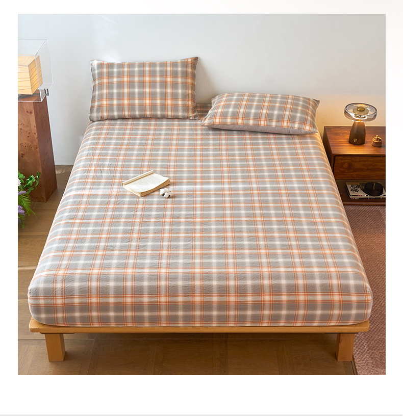 春皖家纺 2026春夏新款全棉纯棉水洗棉单品系列床笠单件床笠单品-A版单床笠 栗木-咖格