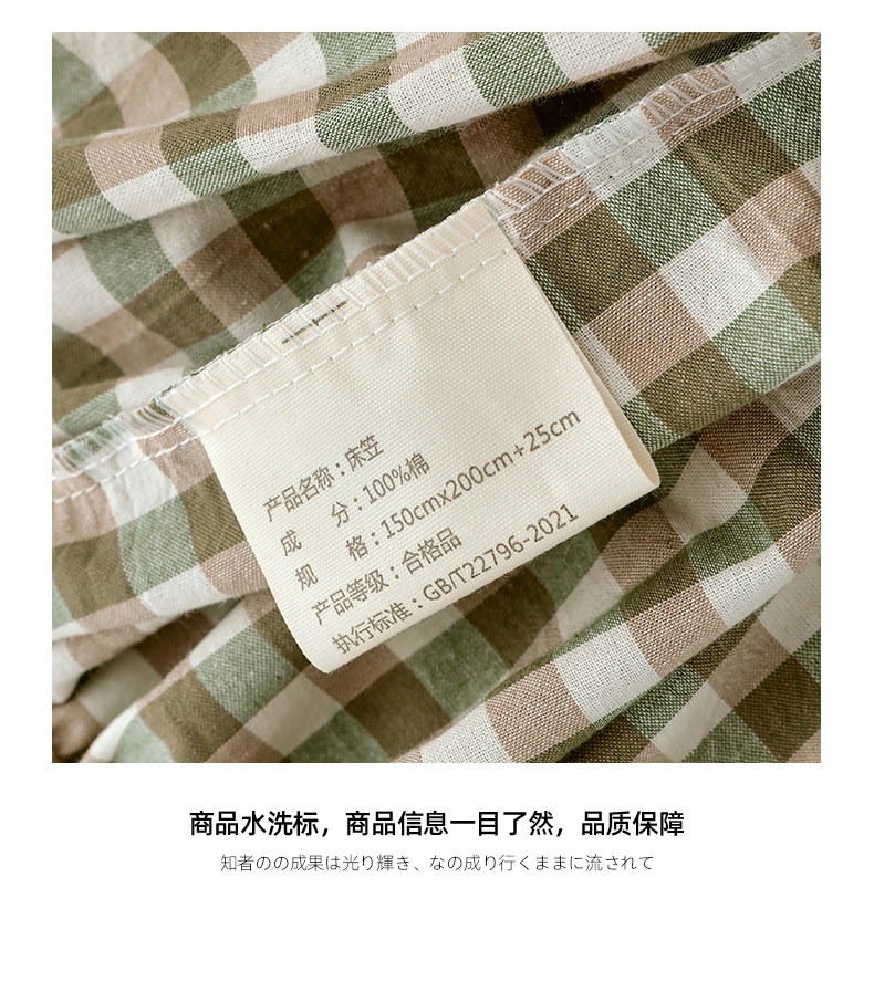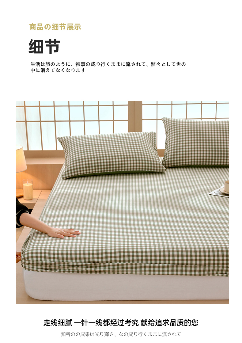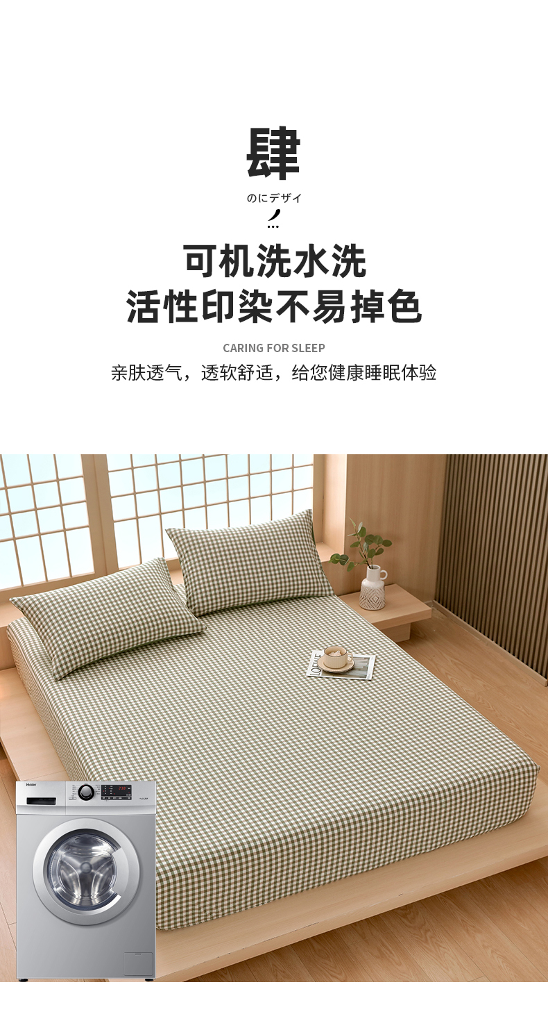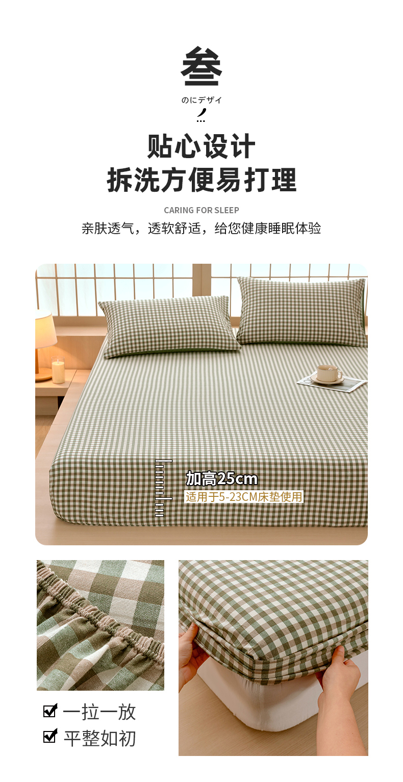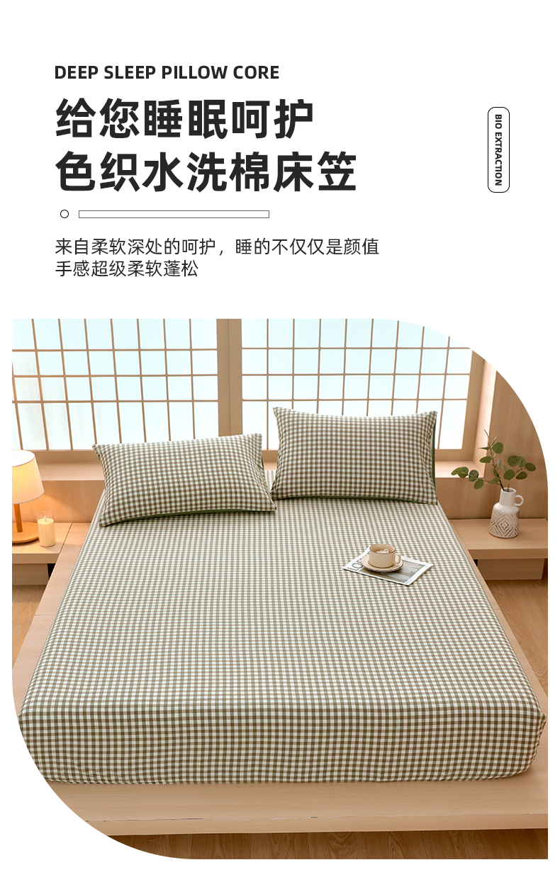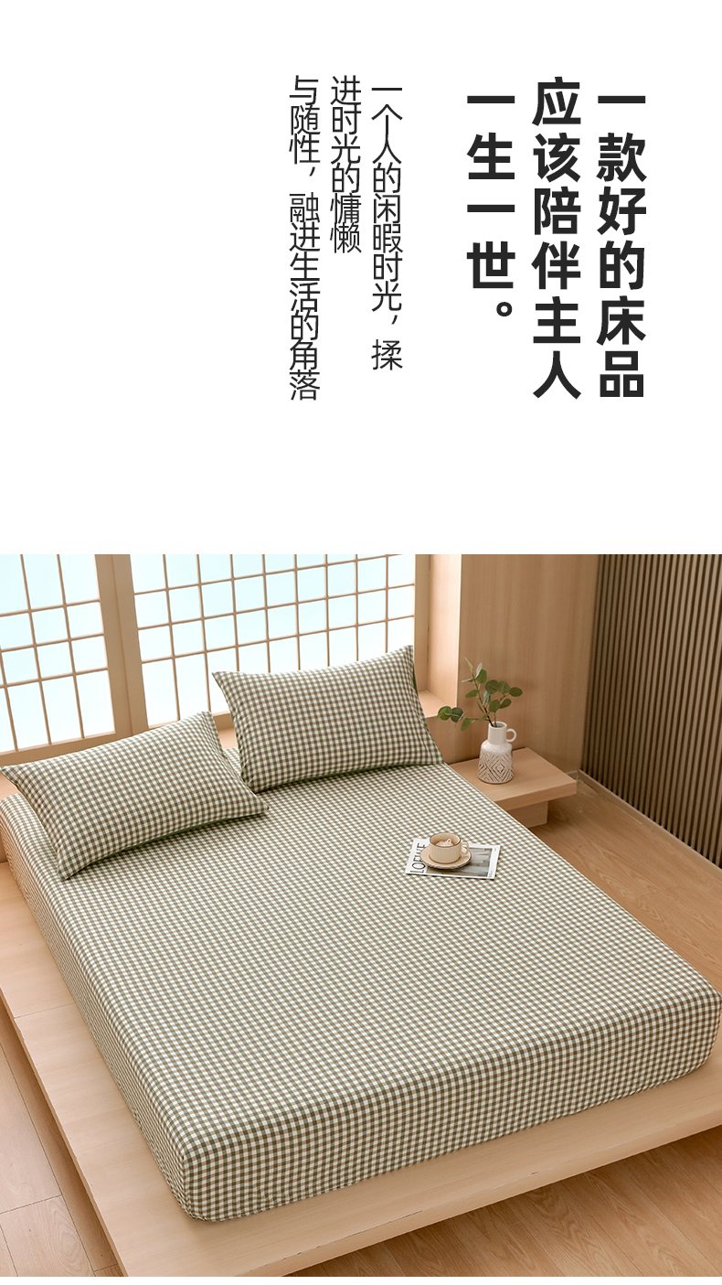 商品名称:春皖家纺 2026春夏新款全棉纯棉水洗棉单品系列床笠单件床笠单品-A版单床笠 素雅-绿格