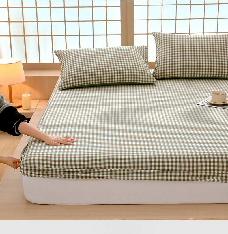 春皖家纺 2026春夏新款全棉纯棉水洗棉单品系列床笠单件床笠单品-A版单床笠 素雅-绿格