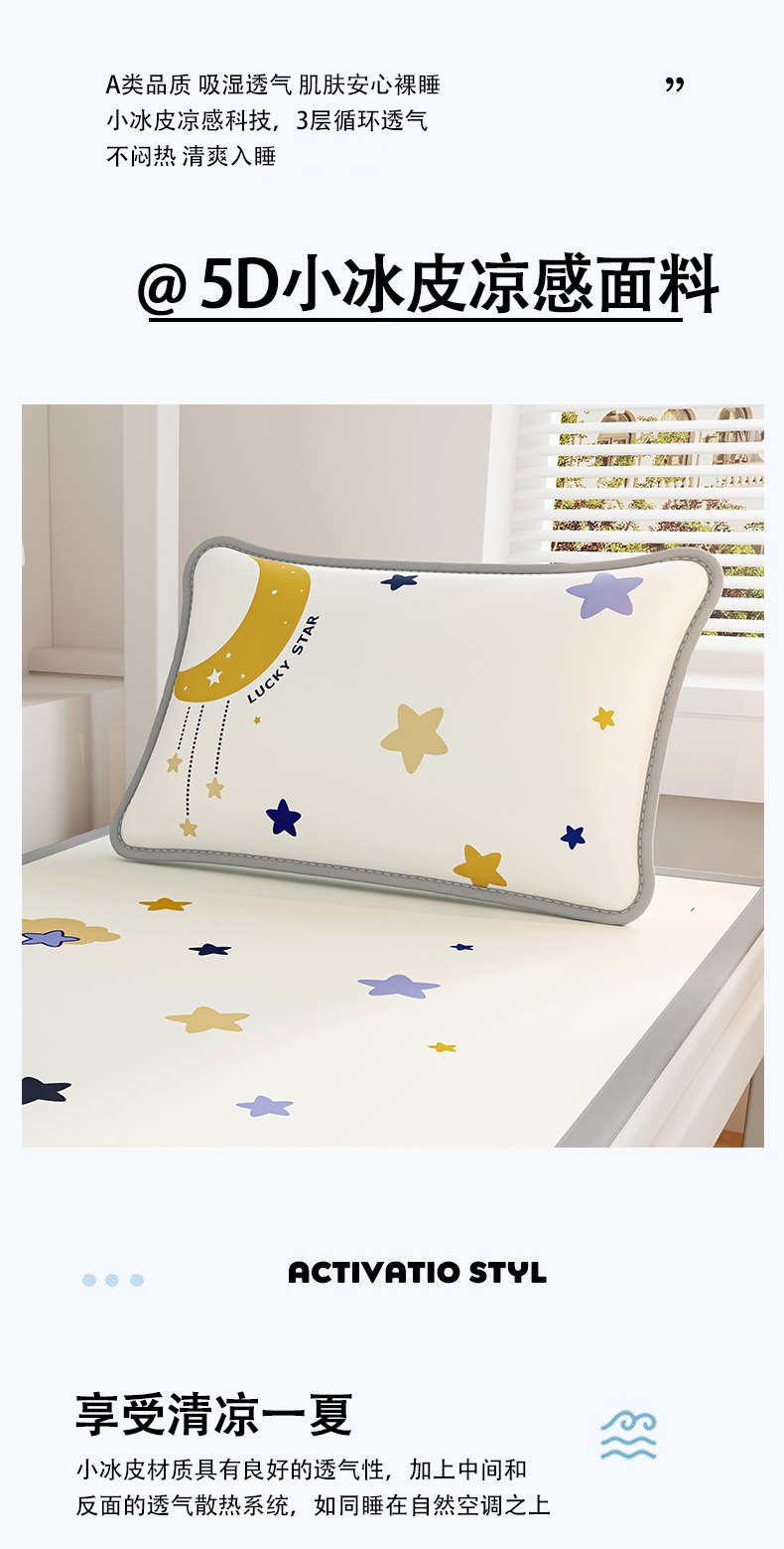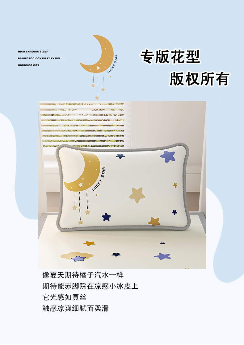 商品名称:奇丝雅 2026夏季A类数码印花卡通冰丝凉席枕套凉感家用儿童可机洗单人学生宿舍48×74 满天星辰